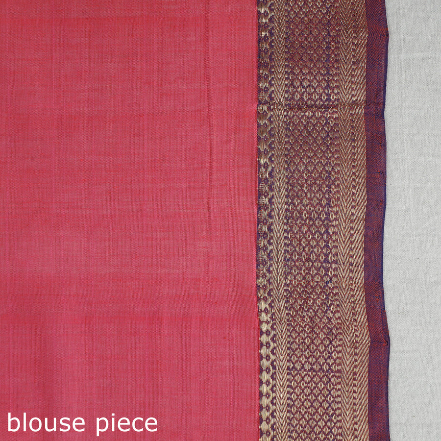 Red - Handloom Cotton Zari Border Mangalagiri Fabric 02