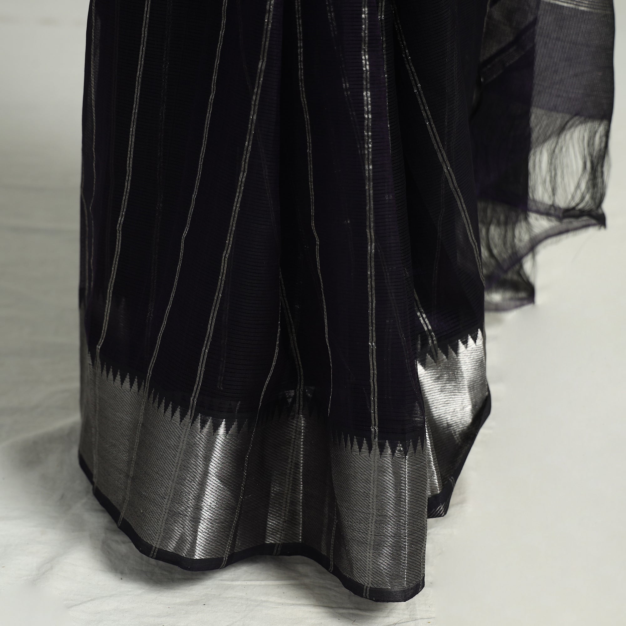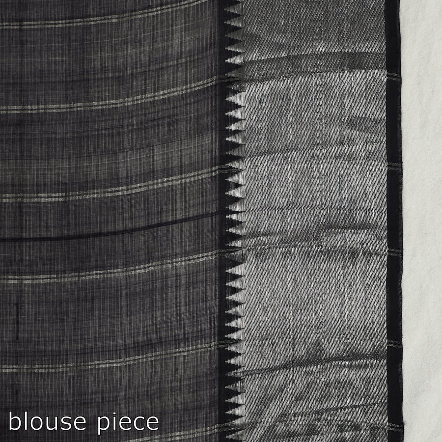 Black - 2pc Handloom Cotton Unstitched Mangalagiri Dress Material with Jewellery Set 12