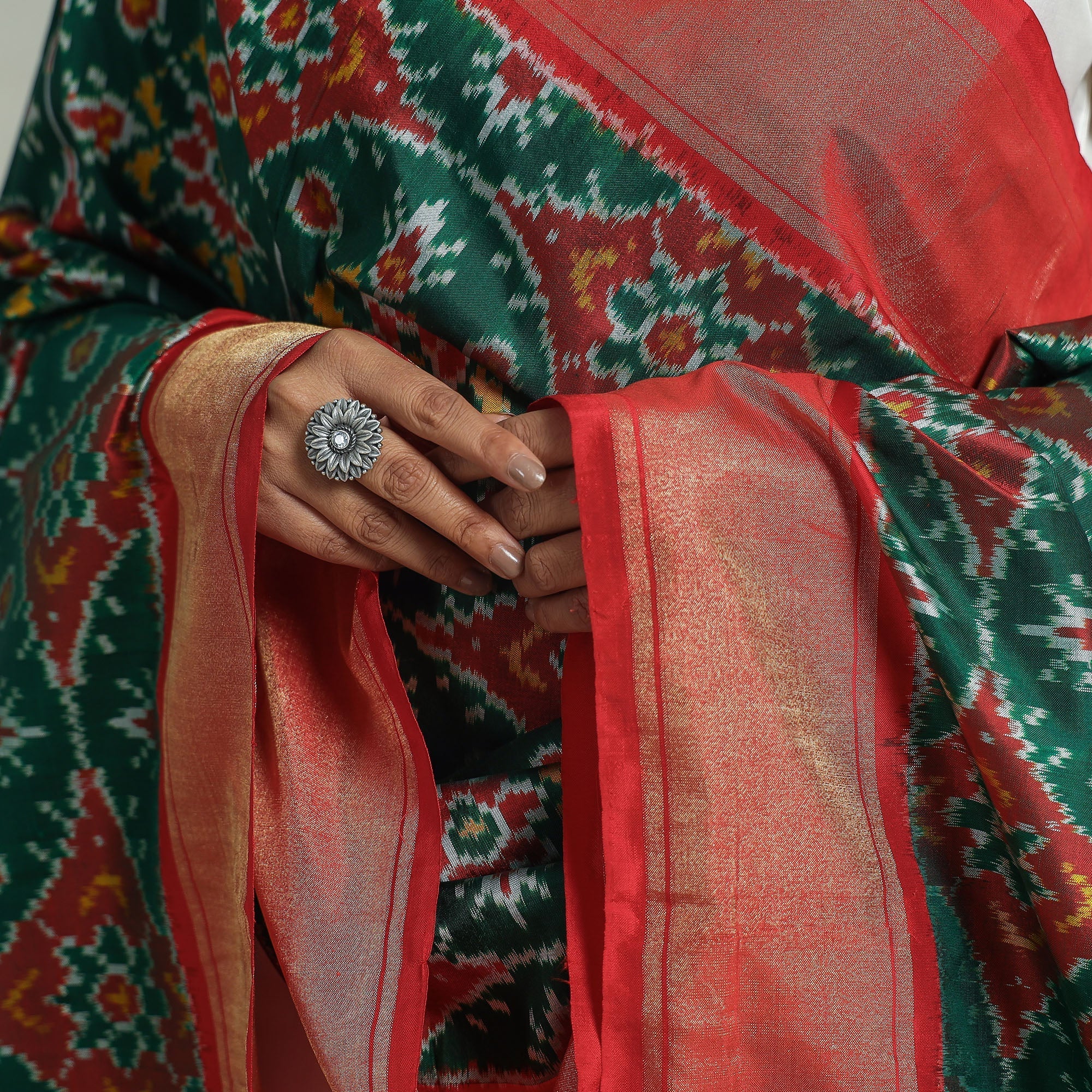 Green - Handloom Raw Silk Pochampally Ikat Fabric 01