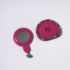 This exquisite handcrafted purple kutch cutwork leather hand mirror with pouch is made by the skilled artisans of Kutch from cruelty free natural leather & glass mirror. This handicrafted art tradition of the tribal community of Kutch district in Gujarat. This exquisite mirror, accompanied by a pouch, adds elegance to your grooming routine with a touch of cultural heritage.