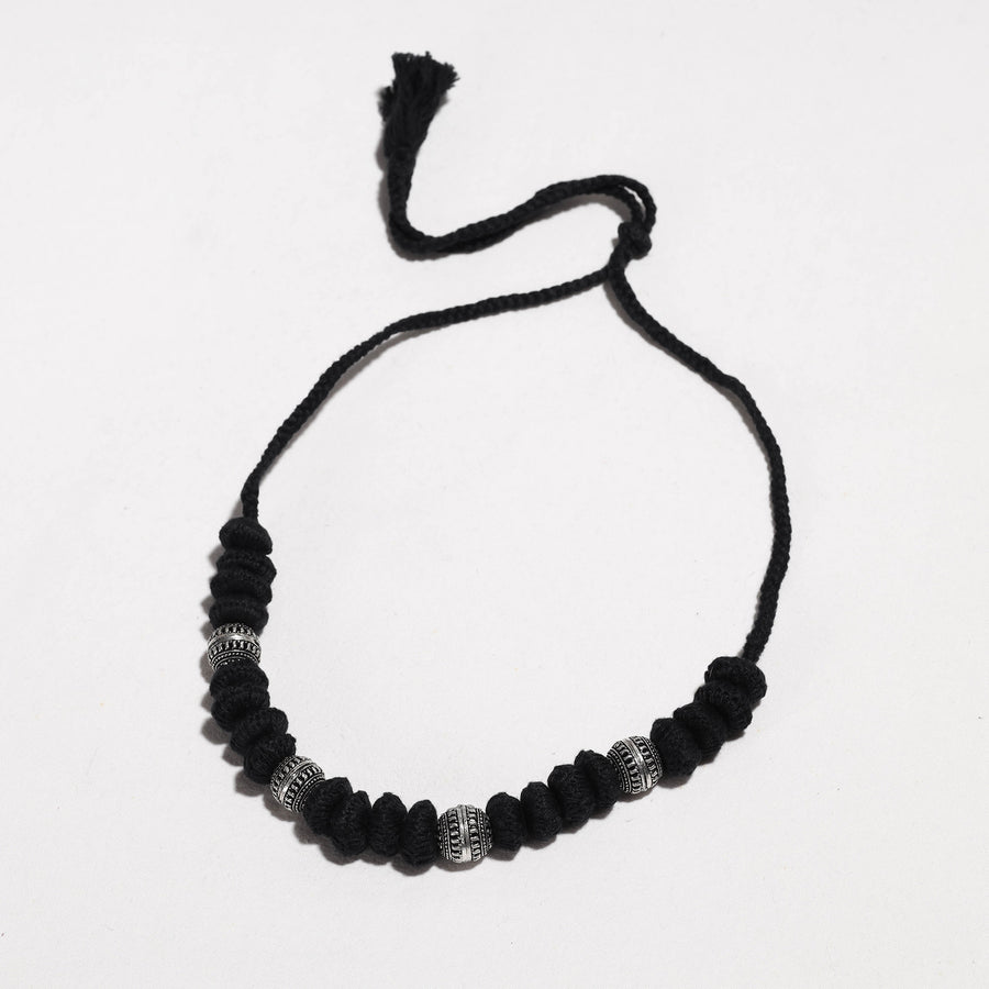 Elevate your style with our black banjara lambani thread and beads necklace, skillfully handcrafted by tribal lambani artisans in Bijapur, Karnataka. Crafted from thread and oxidised german silver beads, this necklace exudes cultural richness and contemporary elegance. Versatile and eye-catching, it adds a touch of tribal heritage to any outfit, making it perfect for both casual and formal occasions. Embrace the unique craftsmanship of the Lambani community with this distinctive accessory.
