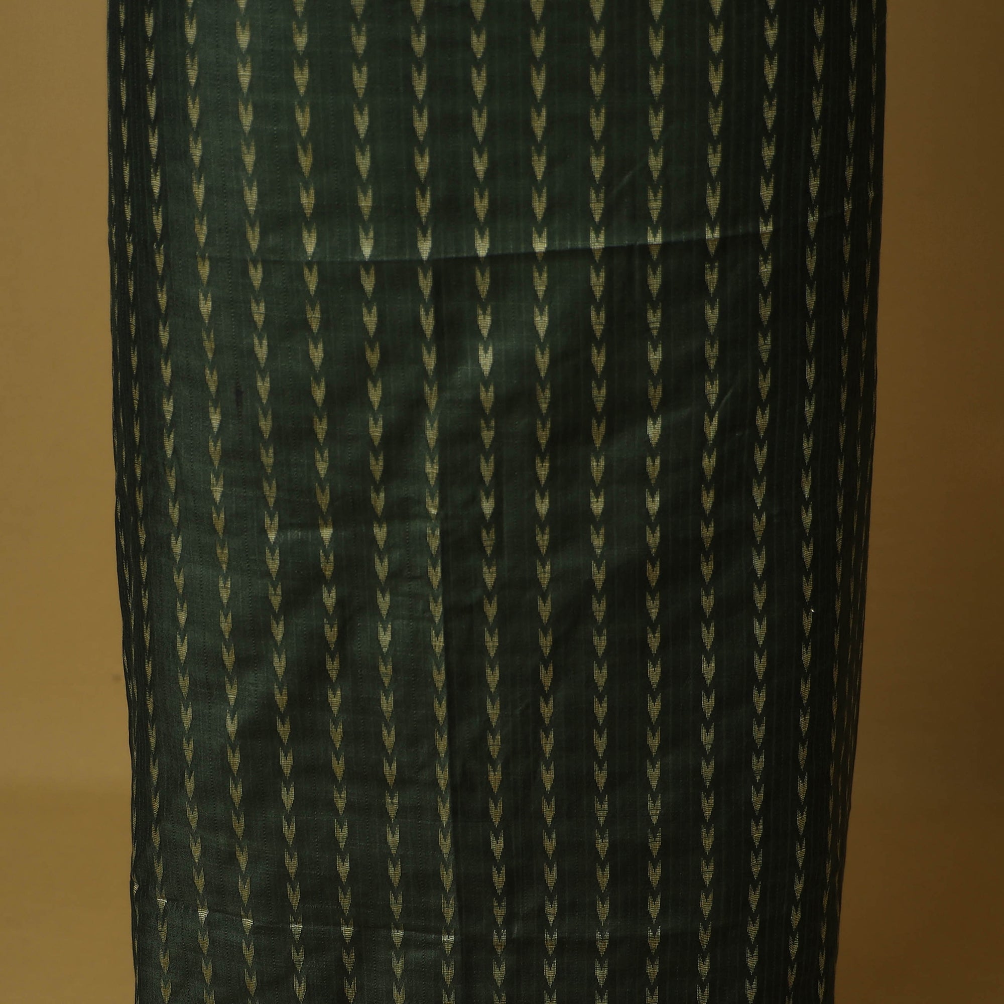 Fine quality green handloom mulberry kurta material & bottom material set with banana silk dupatta that showcases beautifully handwoven textures from Bhagalpur. It has sheen on one side and marble print on another. Marbling is a method of aqueous surface design, which can produce patterns similar to smooth marble or other kinds of stone. The patterns are the result of color floated on either plain water or a viscous solution known as size, and then carefully transferred to an absorbent surface, like fabric. Mulberry silk known for its shine and softness. It is one of the most renowned and popular forms of Silk, particularly when it comes to textiles.