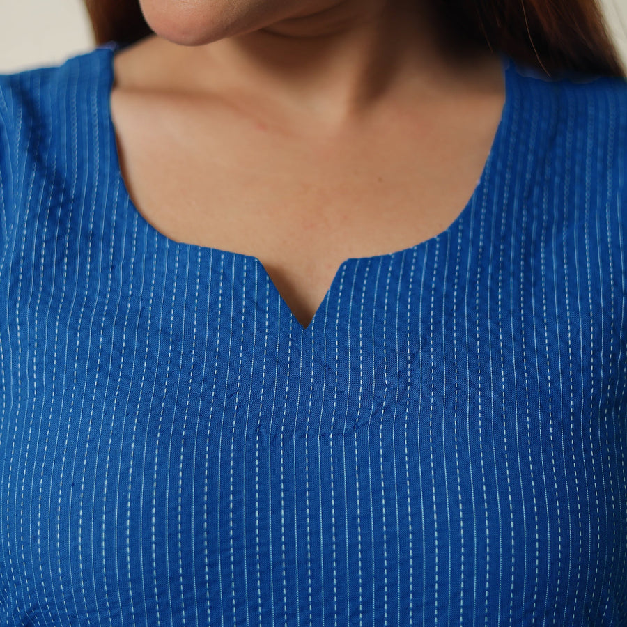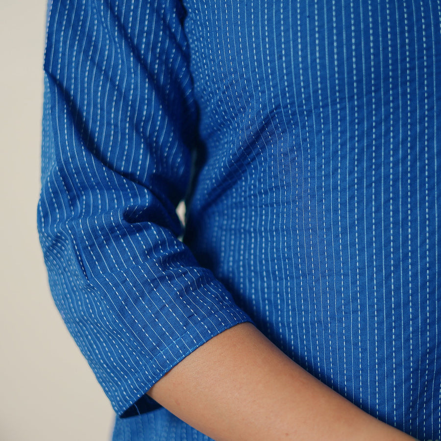 Fine quality running stitch plain pure cotton long Kurta with side pocket. This prewashed running stitch cotton fabric is of fine quality and has been dyed a plain color. It was machine made and not created through handmade processes. The fabric originates from Jaipur, Rajasthan, and is ideal for a variety of projects due to its softness and durability.
