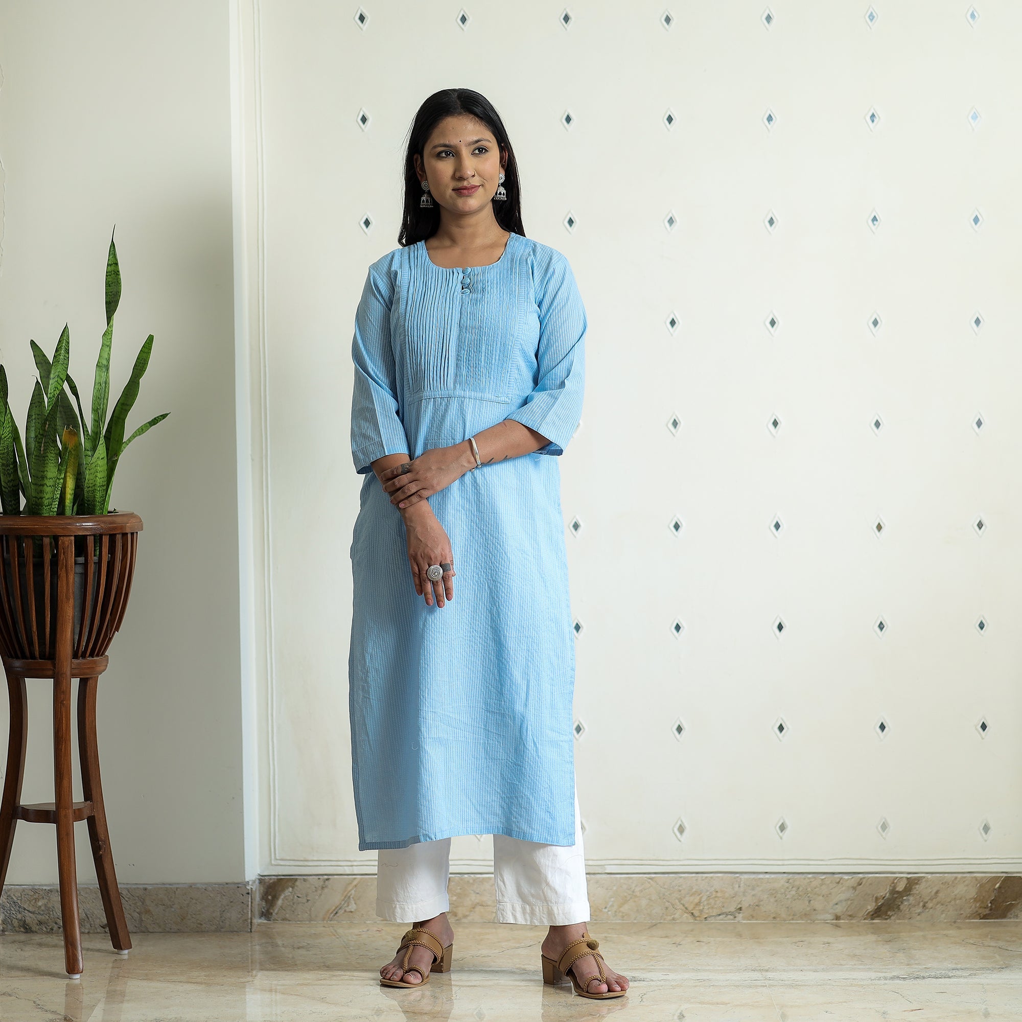 {"id":7558050578627,"title":"Sky Blue - Running Stitch Cotton Long Straight Kurta","handle":"2023-111-1-31-sky-blue-running-stitch-cotton-long-kurta","description":"\u003ctable width=\"100%\" class=\"gmail-mce-item-table\"\u003e\n\u003ctbody\u003e\n\u003ctr\u003e\n\u003ctd\u003e\u003cspan style=\"color: #f1c232;\" data-mce-style=\"color: #f1c232;\"\u003eWeight\u003c\/span\u003e\u003c\/td\u003e\n\u003ctd\u003e200 grams (approximately).\u003c\/td\u003e\n\u003c\/tr\u003e\n\u003ctr\u003e\n\u003ctd\u003e\u003cspan style=\"color: #f1c232;\" data-mce-style=\"color: #f1c232;\"\u003eMaterial\u003c\/span\u003e\u003c\/td\u003e\n\u003ctd\u003eFine quality running stitch plain pure cotton long Kurta \u003cspan\u003ewith side pocket\u003c\/span\u003e. \u003cspan\u003eThis prewashed running stitch cotton fabric is of fine quality and has been dyed a plain color. It was machine made and not created through handmade processes. The fabric originates from Jaipur, Rajasthan, and is ideal for a variety of projects due to its softness and durability.\u003c\/span\u003e\n\u003c\/td\u003e\n\u003c\/tr\u003e\n\u003ctr\u003e\n\u003ctd\u003e\u003cspan style=\"color: #f1c232;\" data-mce-style=\"color: #f1c232;\"\u003eCare\u003c\/span\u003e\u003c\/td\u003e\n\u003ctd\u003eGentle hand wash separately in cold water with mild\/liquid detergents. Avoid soaking for too long.\u003c\/td\u003e\n\u003c\/tr\u003e\n\u003ctr\u003e\n\u003ctd\u003e\u003cspan style=\"color: #f1c232;\" data-mce-style=\"color: #f1c232;\"\u003eColour\u003c\/span\u003e\u003c\/td\u003e\n\u003ctd\u003eSlight difference in color from the visible product image is possible. \u003ca href=\"\/pages\/photos\" target=\"_blank\" data-mce-href=\"https:\/\/www.itokri.com\/pages\/photos\" title=\"Authentic handcrafted products | itokri’s visual and quality promise\" aria-label=\"Authentic handcrafted products | itokri’s visual and quality promise\"\u003eRead more\u003c\/a\u003e.\u003c\/td\u003e\n\u003c\/tr\u003e\n\u003c\/tbody\u003e\n\u003c\/table\u003e","published_at":"2023-11-27T10:55:35+05:30","created_at":"2023-05-04T12:33:16+05:30","vendor":"ITOKRI CASUALS","type":"kurtas","tags":["blue","craft-popular-products","find my size","itokri casuals","kurtas","made to order","material-cotton","meta-filter-craft process-plain solid","meta-filter-craft process-running stitch","new arrival kurtis","plus size","primarycraft_plain-solid","reshoot","sizeGuide-long-kurti-size-chart"],"price":149000,"price_min":149000,"price_max":149000,"available":true,"price_varies":false,"compare_at_price":null,"compare_at_price_min":0,"compare_at_price_max":0,"compare_at_price_varies":false,"variants":[{"id":42431768035523,"title":"XS","option1":"XS","option2":null,"option3":null,"sku":"COJP_JP\/KUT\/61\/4\/XS","requires_shipping":true,"taxable":true,"featured_image":null,"available":true,"name":"Sky Blue - Running Stitch Cotton Long Straight Kurta - XS","public_title":"XS","options":["XS"],"price":149000,"weight":300,"compare_at_price":null,"inventory_quantity":6,"inventory_management":"shopify","inventory_policy":"deny","barcode":null,"requires_selling_plan":false,"selling_plan_allocations":[],"quantity_rule":{"min":1,"max":null,"increment":1}},{"id":42431768068291,"title":"S","option1":"S","option2":null,"option3":null,"sku":"COJP_JP\/KUT\/61\/4\/S","requires_shipping":true,"taxable":true,"featured_image":null,"available":true,"name":"Sky Blue - Running Stitch Cotton Long Straight Kurta - S","public_title":"S","options":["S"],"price":149000,"weight":300,"compare_at_price":null,"inventory_quantity":7,"inventory_management":"shopify","inventory_policy":"deny","barcode":null,"requires_selling_plan":false,"selling_plan_allocations":[],"quantity_rule":{"min":1,"max":null,"increment":1}},{"id":42431768101059,"title":"M","option1":"M","option2":null,"option3":null,"sku":"COJP_JP\/KUT\/61\/4\/M","requires_shipping":true,"taxable":true,"featured_image":null,"available":true,"name":"Sky Blue - Running Stitch Cotton Long Straight Kurta - M","public_title":"M","options":["M"],"price":149000,"weight":300,"compare_at_price":null,"inventory_quantity":6,"inventory_management":"shopify","inventory_policy":"deny","barcode":null,"requires_selling_plan":false,"selling_plan_allocations":[],"quantity_rule":{"min":1,"max":null,"increment":1}},{"id":42431768133827,"title":"L","option1":"L","option2":null,"option3":null,"sku":"COJP_JP\/KUT\/61\/4\/L","requires_shipping":true,"taxable":true,"featured_image":null,"available":true,"name":"Sky Blue - Running Stitch Cotton Long Straight Kurta - L","public_title":"L","options":["L"],"price":149000,"weight":300,"compare_at_price":null,"inventory_quantity":6,"inventory_management":"shopify","inventory_policy":"deny","barcode":null,"requires_selling_plan":false,"selling_plan_allocations":[],"quantity_rule":{"min":1,"max":null,"increment":1}},{"id":42431768166595,"title":"XL","option1":"XL","option2":null,"option3":null,"sku":"COJP_JP\/KUT\/61\/4\/XL","requires_shipping":true,"taxable":true,"featured_image":null,"available":true,"name":"Sky Blue - Running Stitch Cotton Long Straight Kurta - XL","public_title":"XL","options":["XL"],"price":149000,"weight":300,"compare_at_price":null,"inventory_quantity":6,"inventory_management":"shopify","inventory_policy":"deny","barcode":null,"requires_selling_plan":false,"selling_plan_allocations":[],"quantity_rule":{"min":1,"max":null,"increment":1}},{"id":42431768199363,"title":"XXL","option1":"XXL","option2":null,"option3":null,"sku":"COJP_JP\/KUT\/61\/4\/2XL","requires_shipping":true,"taxable":true,"featured_image":null,"available":true,"name":"Sky Blue - Running Stitch Cotton Long Straight Kurta - XXL","public_title":"XXL","options":["XXL"],"price":149000,"weight":300,"compare_at_price":null,"inventory_quantity":6,"inventory_management":"shopify","inventory_policy":"deny","barcode":null,"requires_selling_plan":false,"selling_plan_allocations":[],"quantity_rule":{"min":1,"max":null,"increment":1}},{"id":42431768232131,"title":"
