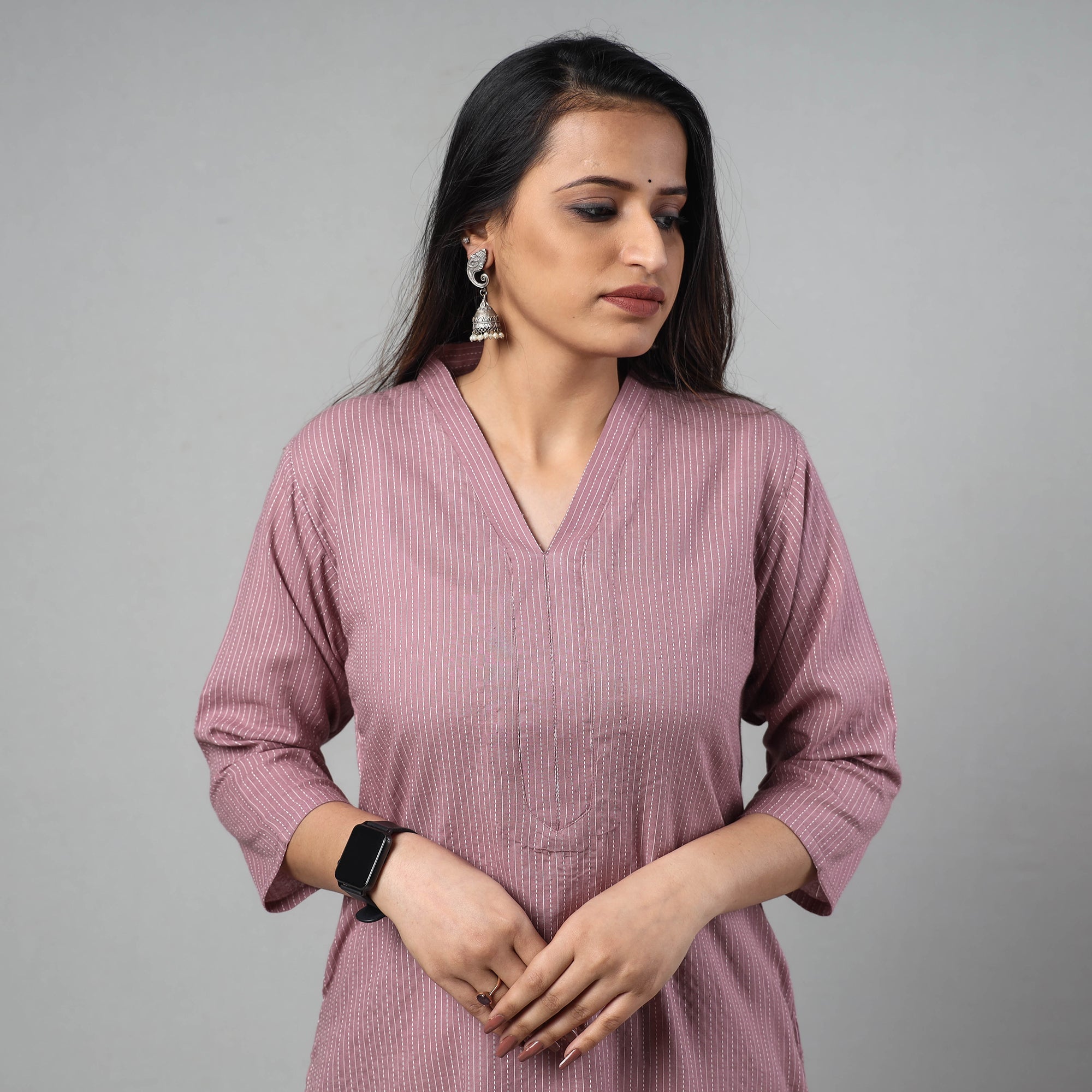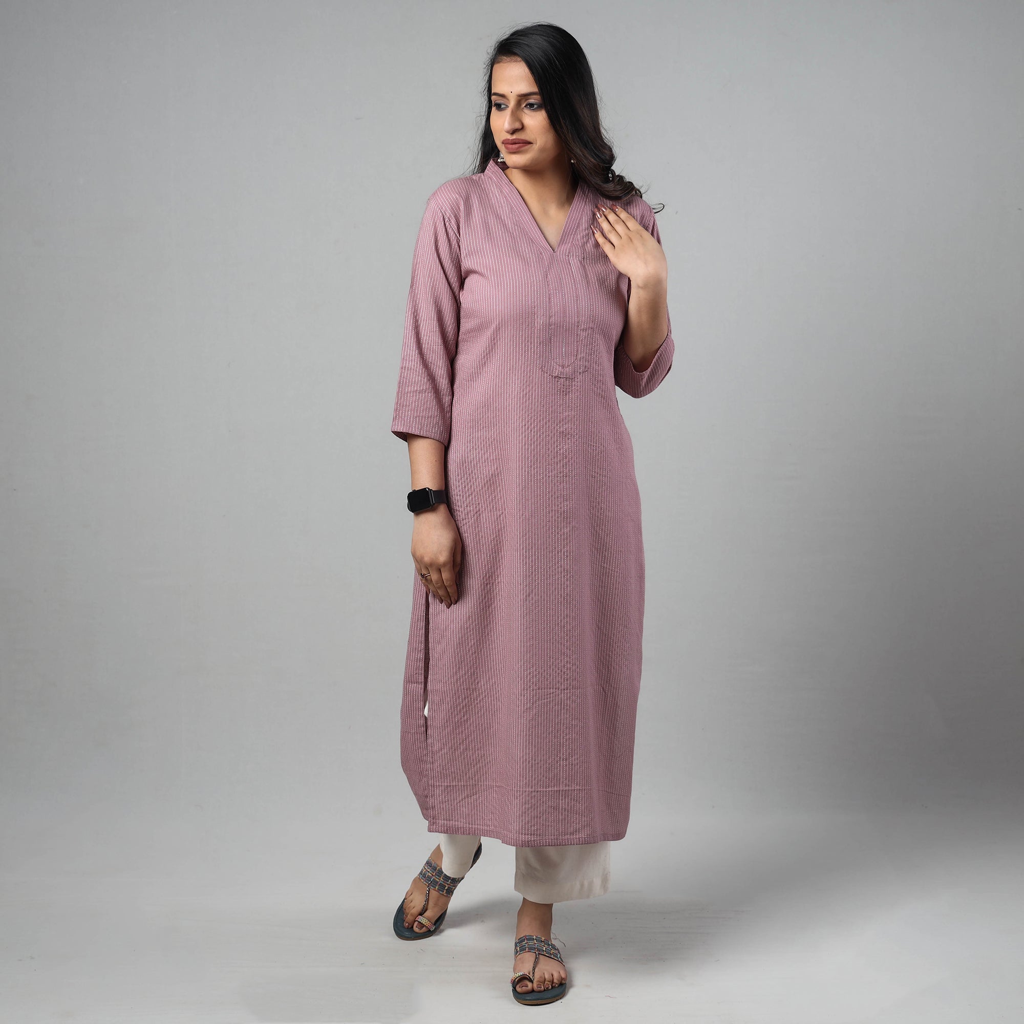 Fine quality running stitch plain pure cotton long Kurta with side pocket. This prewashed running stitch cotton fabric is of fine quality and has been dyed a plain color. It was machine made and not created through handmade processes. The fabric originates from Jaipur, Rajasthan, and is ideal for a variety of projects due to its softness and durability.