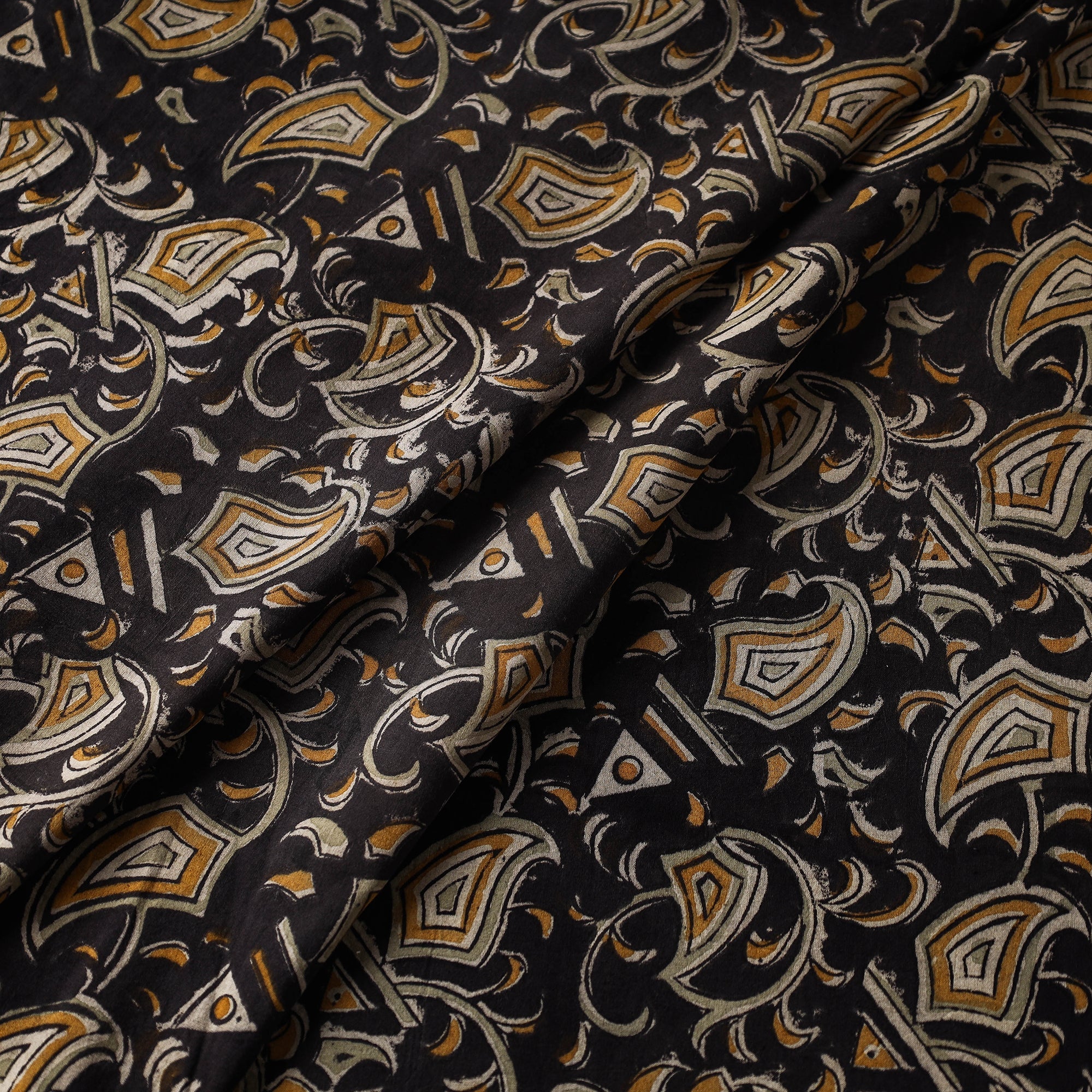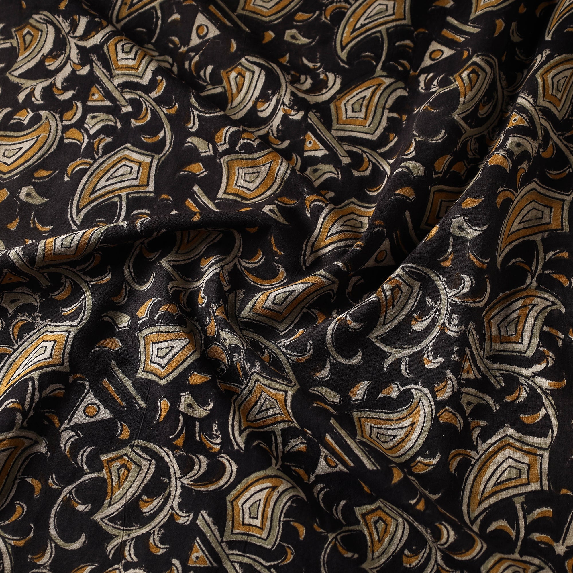 Indulge in the rich artistry of kalamkari with this fine quality black cotton fabric. Hand block printed using natural dyes, this fabric showcases an array of traditional motifs inspired by Kalamkari painting. The intricate detailing and complex techniques used by artisans from Andhra Pradesh make this fabric a masterpiece. Perfect for creating stunning apparel, home decor, or accessories with a touch of traditional elegance.