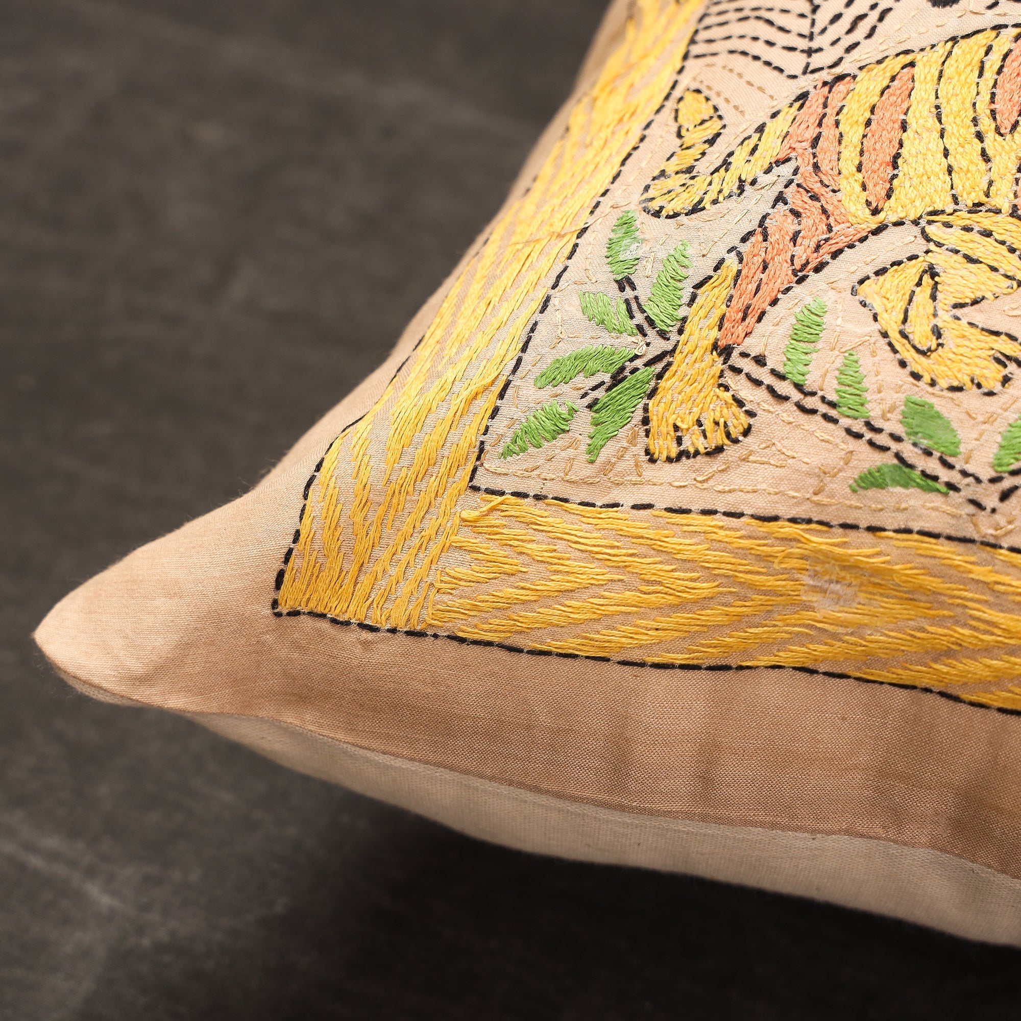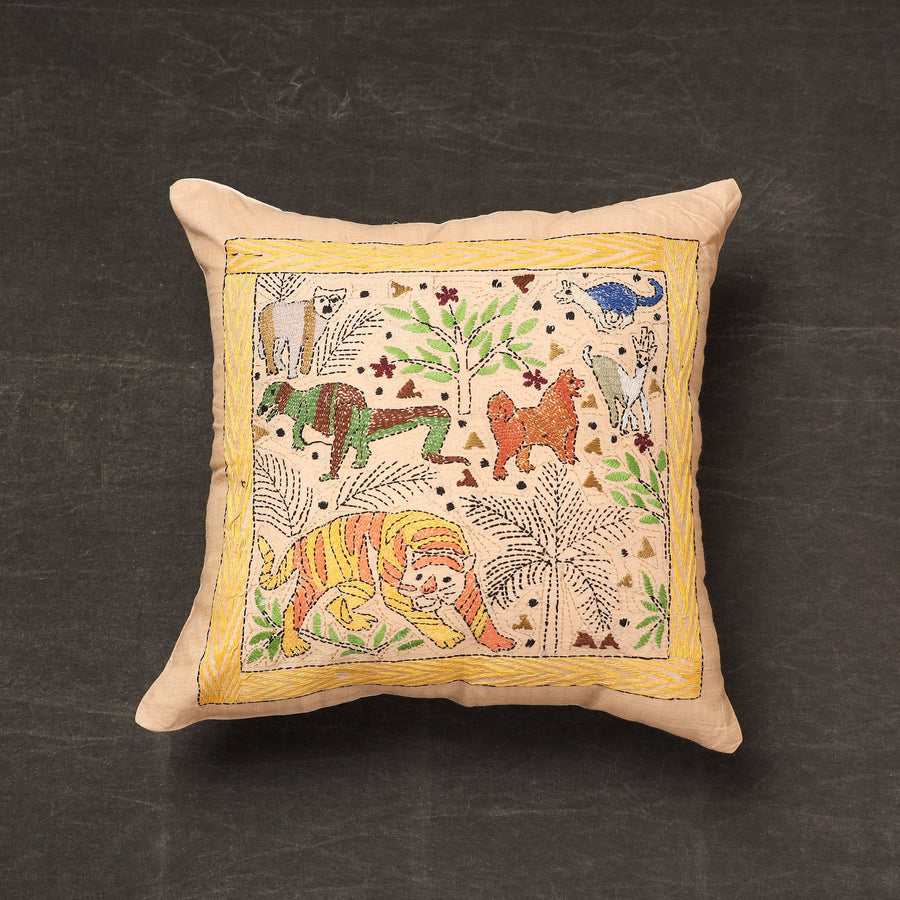 Elevate your home decor with our Bengal kantha hand embroidery silk cushion cover, showcasing contemporary patterns meticulously hand-embroidered using West Bengal's traditional Kantha technique. Crafted with precision, this exquisite cushion cover adds a touch of cultural elegance. Versatile in use, it enhances both living spaces and bedrooms, embodying the rich heritage of Bengal's artisanal craftsmanship.