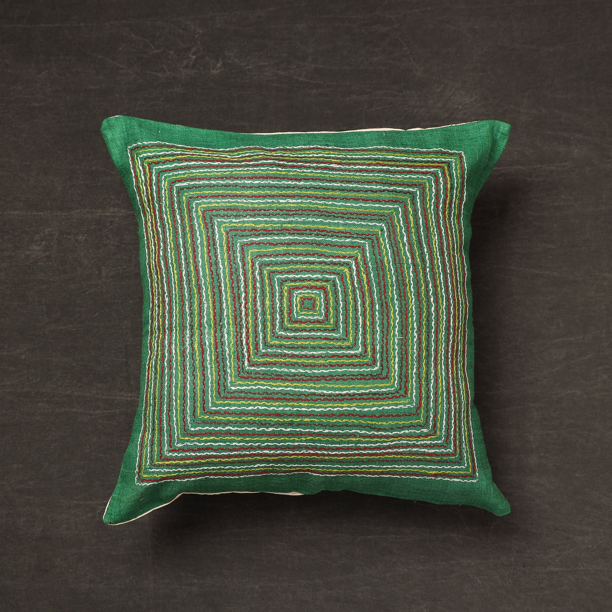 Elevate your home decor with our green bengal kantha hand embroidery silk cotton cushion cover, showcasing contemporary patterns meticulously hand-embroidered using West Bengal's traditional kantha technique. Crafted with precision, this exquisite cushion cover adds a touch of cultural elegance. Versatile in use, it enhances both living spaces and bedrooms, embodying the rich heritage of Bengal's artisanal craftsmanship.