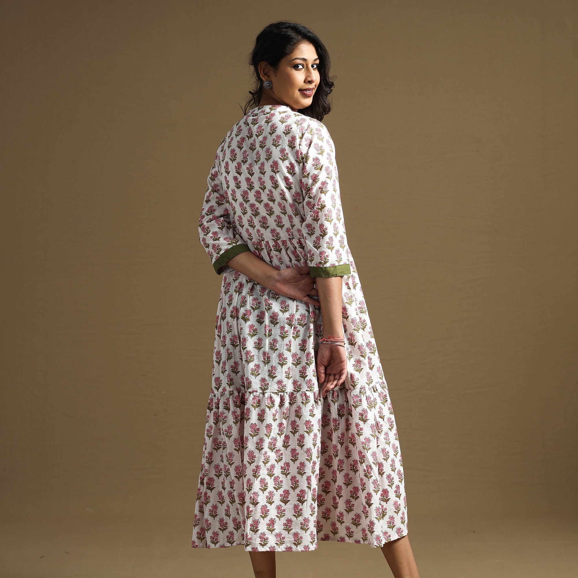 • Buy Sanganeri Block Printed Cotton Flared Dress Online at iTokri.com