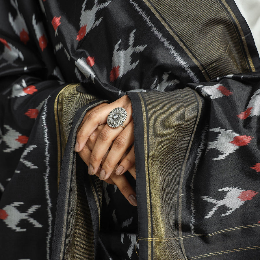 {"id":7694816018627,"title":"Black - Handwoven Pochampally Ikat Pure Mulberry Silk Dupatta with Tassels","handle":"2023-1134-2-13-handwoven-pochampally-ikat-pure-mulberry-silk-dupatta-with-tassels","description":"\u003ctable width=\"100%\" class=\"gmail-mce-item-table\"\u003e\n\u003ctbody\u003e\n\u003ctr\u003e\n\u003ctd\u003e\u003cspan\u003eSize\u003c\/span\u003e\u003c\/td\u003e\n\u003ctd\u003e\n\u003cspan\u003eLength - 226 cm, Width - 89 cm\u003c\/span\u003e\u003cspan\u003e.\u003c\/span\u003e\n\u003c\/td\u003e\n\u003c\/tr\u003e\n\u003ctr\u003e\n\u003ctd\u003e\u003cspan\u003eWeight\u003c\/span\u003e\u003c\/td\u003e\n\u003ctd\u003e\u003cspan\u003e185 grams (approximately). Soft texture \u0026amp; light weight\u003c\/span\u003e\u003c\/td\u003e\n\u003c\/tr\u003e\n\u003ctr\u003e\n\u003ctd\u003e\u003cspan\u003eMaterial\u003c\/span\u003e\u003c\/td\u003e\n\u003ctd\u003eElevate your style with our pochampally ikat pure mulberry silk handloom handwoven dupatta with Tassels. Ikat (Ikkat) is a dyeing technique used to pattern textiles that employs a resist dyeing process similar to tie-dye on either the warp or weft fibers prior to dyeing. Ikat has lovely patterns and are world famous for their extremely beautiful colors, texture and designs. Indian Ikat is always admired by the fashion designers around the world. Mulberry silk known for its shine and softness. It is one of the most renowned and popular forms of silk. Adorned with chic tassels, it effortlessly enhances both casual and formal ensembles, adding a touch of cultural charm and elegance to your wardrobe.\u003cbr\u003e\n\u003c\/td\u003e\n\u003c\/tr\u003e\n\u003ctr\u003e\n\u003ctd\u003e\u003cspan\u003eCare\u003c\/span\u003e\u003c\/td\u003e\n\u003ctd\u003e\u003cspan\u003eDry clean only.\u003c\/span\u003e\u003c\/td\u003e\n\u003c\/tr\u003e\n\u003ctr\u003e\n\u003ctd\u003e\u003cspan\u003eColour\u003c\/span\u003e\u003c\/td\u003e\n\u003ctd\u003eSlight difference in colour from the visible product image is possible.\u003cspan\u003e \u003c\/span\u003e\u003ca href=\"\/pages\/photos\" target=\"_blank\" rel=\"noopener\" title=\"Authentic handcrafted products | itokri’s visual and quality promise\" aria-label=\"Authentic handcrafted products | itokri’s visual and quality promise\"\u003eRead more\u003c\/a\u003e.\u003c\/td\u003e\n\u003c\/tr\u003e\n\u003c\/tbody\u003e\n\u003c\/table\u003e","published_at":"2023-12-22T15:52:54+05:30","created_at":"2023-12-22T14:48:53+05:30","vendor":"IKAT WEAVES BY EDEM CHANDANA","type":"dupattas","tags":["black","dupattas","ikat weaves by edem chandana","material-mulberry silk","meta-filter-craft process-pochampally ikat weaving","primarycraft_pochampally-ikat-weaving"],"price":750000,"price_min":750000,"price_max":750000,"available":true,"price_varies":false,"compare_at_price":null,"compare_at_price_min":0,"compare_at_price_max":0,"compare_at_price_varies":false,"variants":[{"id":42745987498179,"title":"Default Title","option1":"Default Title","option2":null,"option3":null,"sku":"SVF\/51\/B\/3","requires_shipping":true,"taxable":true,"featured_image":null,"available":true,"name":"Black - Handwoven Pochampally Ikat Pure Mulberry Silk Dupatta with Tassels","public_title":null,"options":["Default Title"],"price":750000,"weight":500,"compare_at_price":null,"inventory_quantity":1,"inventory_management":"shopify","inventory_policy":"deny","barcode":null,"requires_selling_plan":false,"selling_plan_allocations":[],"quantity_rule":{"min":1,"max":null,"increment":1}}],"images":["\/\/itokri.com\/cdn\/shop\/files\/black-handwoven-pochampally-ikat-pure-mulberry-silk-dupatta-tassels-218.jpg?v=1764813143","\/\/itokri.com\/cdn\/shop\/files\/black-handwoven-pochampally-ikat-pure-mulberry-silk-dupatta-tassels-664.jpg?v=1764813146","\/\/itokri.com\/cdn\/shop\/files\/black-handwoven-pochampally-ikat-pure-mulberry-silk-dupatta-tassels-527.jpg?v=1764813149","\/\/itokri.com\/cdn\/shop\/files\/black-handwoven-pochampally-ikat-pure-mulberry-silk-dupatta-tassels-945.jpg?v=1764813152","\/\/itokri.com\/cdn\/shop\/files\/black-handwoven-pochampally-ikat-pure-mulberry-silk-dupatta-tassels-450.jpg?v=1764813155","\/\/itokri.com\/cdn\/shop\/files\/black-handwoven-pochampally-ikat-pure-mulberry-silk-dupatta-tassels-553.jpg?v=1764848662"],"featured_image":"\/\/itokri.com\/cdn\/shop\/files\/black-handwoven-pochampally-ikat-pure-mulberry-silk-dupatta-tassels-218.jpg?v=1764813143","options":["Title"],"media":[{"alt":"ikat silk dupatta","id":36829630005443,"position":1,"preview_image":{"aspect_ratio":1.0,"height":2000,"width":2000,"src":"\/\/itokri.com\/cdn\/shop\/files\/black-handwoven-pochampally-ikat-pure-mulberry-silk-dupatta-tassels-218.jpg?v=1764813143"},"aspect_ratio":1.0,"height":2000,"media_type":"image","src":"\/\/itokri.com\/cdn\/shop\/files\/black-handwoven-pochampally-ikat-pure-mulberry-silk-dupatta-tassels-218.jpg?v=1764813143","width":2000},{"alt":"ikat silk dupatta","id":36829630070979,"position":2,"preview_image":{"aspect_ratio":1.0,"height":2000,"width":2000,"src":"\/\/itokri.com\/cdn\/shop\/files\/black-handwoven-pochampally-ikat-pure-mulberry-silk-dupatta-tassels-664.jpg?v=1764813146"},"aspect_ratio":1.0,"height":2000,"media_type":"image","src":"\/\/itokri.com\/cdn\/shop\/files\/black-handwoven-pochampally-ikat-pure-mulberry-silk-dupatta-tassels-664.jpg?v=1764813146","width":2000},{"alt":"ikat silk dupatta","id":36829630202051,"position":3,"preview_image":{"aspect_ratio":1.0,"height":2000,"width":2000,"src":"\/\/itokri.com\/cdn\/shop\/files\/black-handwoven-pochampally-ikat-pure-mulberry-silk-dupatta-tassels-527.jpg?v=1764813149"},"aspect_ratio":1.0,"height":2000,"media_type":"image","src":"\/\/itokri.com\/cdn\/shop\/files\/black-handwoven-pochampally-ikat-pure-mulberry-silk-dupatta-tassels-527.jpg?v=1764813149","width":2000},{"alt":"ikat silk dupatta","id":36829630267587,"position":4,"preview_image":{"aspect_ratio":1.0,"height":2000,"width":2000,"src":"\/\/itokri.com\/cdn\/shop\/files\/black-handwoven-pochampally-ikat-pure-mulberry-sil