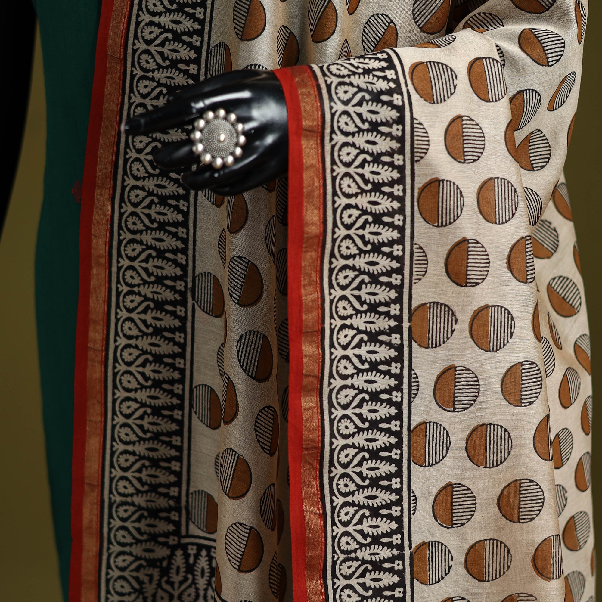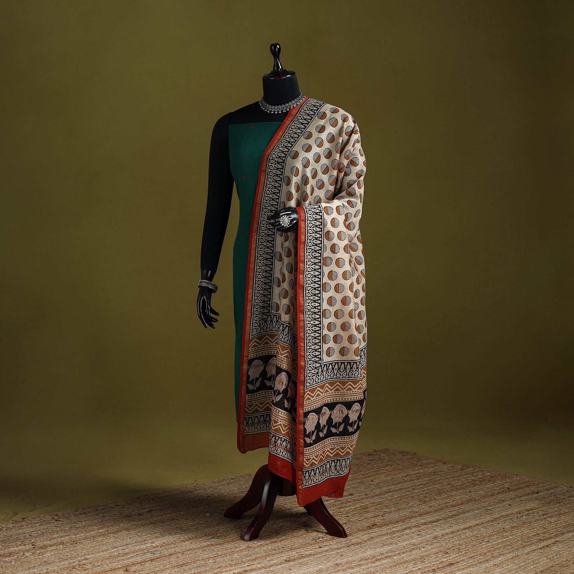 Experience the traditional artistry of Rajasthan with our beige bagru hand block printed chanderi silk-cotton dupatta. This exquisite dupatta is made using natural dyes through the traditional mud resist process using hand-carved wooden blocks practiced in Bagru, Rajasthan. This versatile dupatta complements any outfit, making it a perfect accessory for casual outings or special events, effortlessly combining traditional craftsmanship with contemporary elegance.