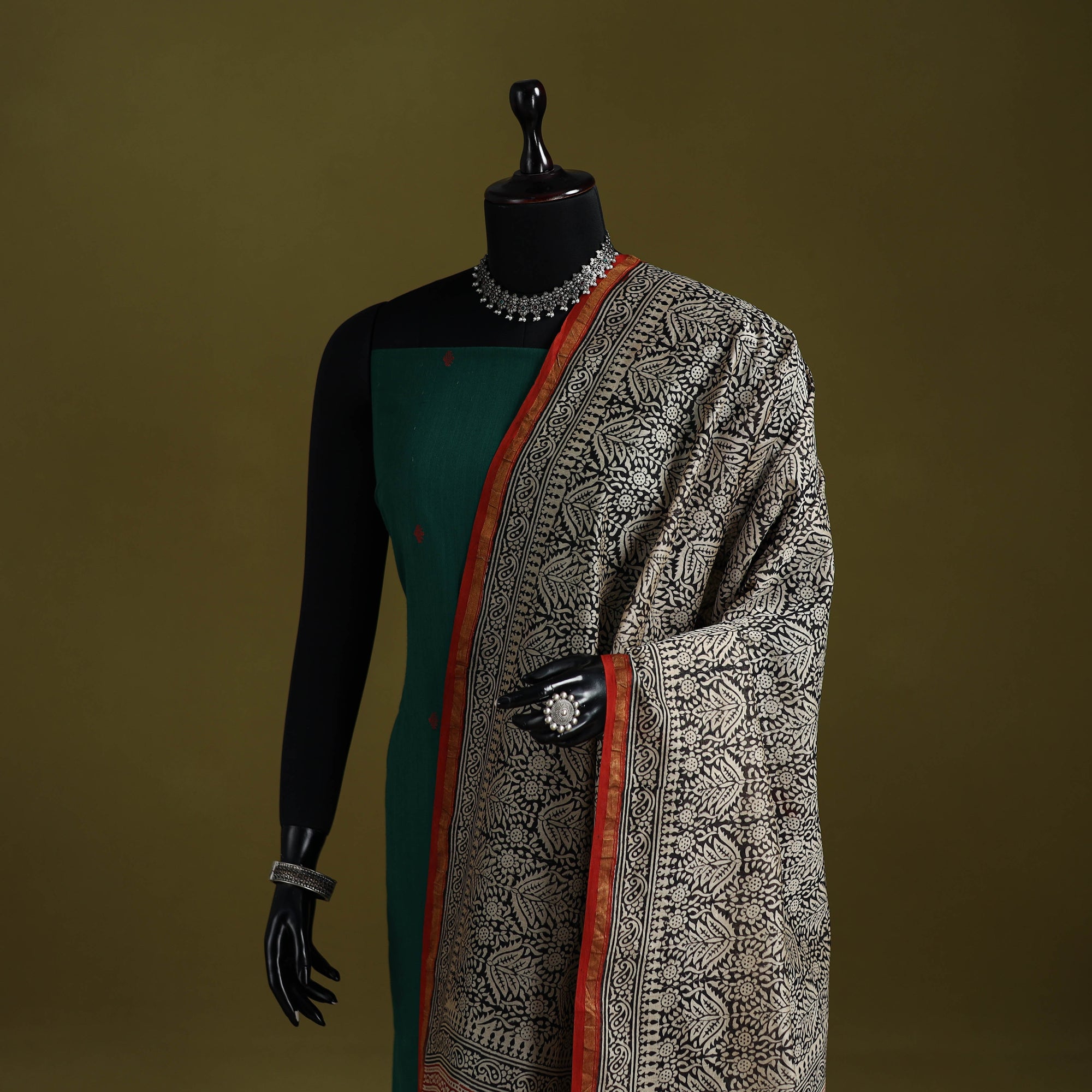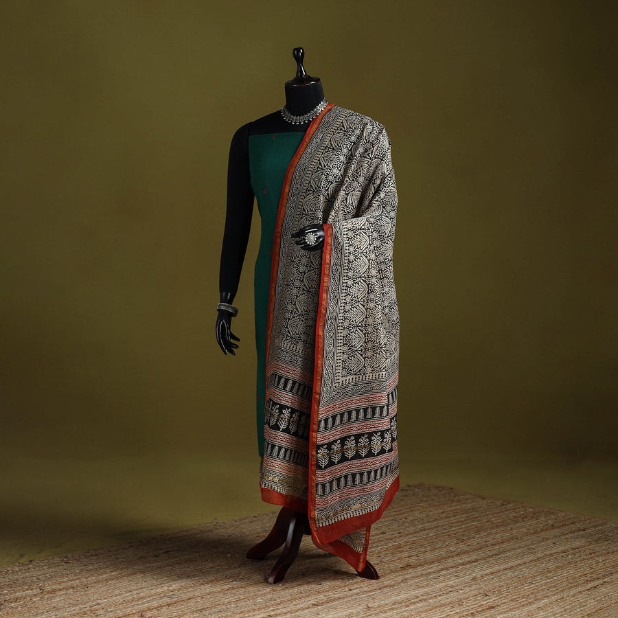 • Black - chanderi silk bagru dupatta 14 - handcrafted