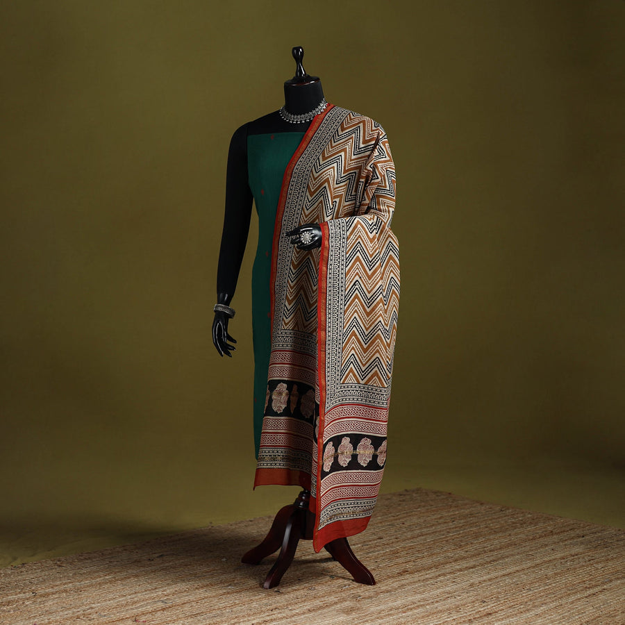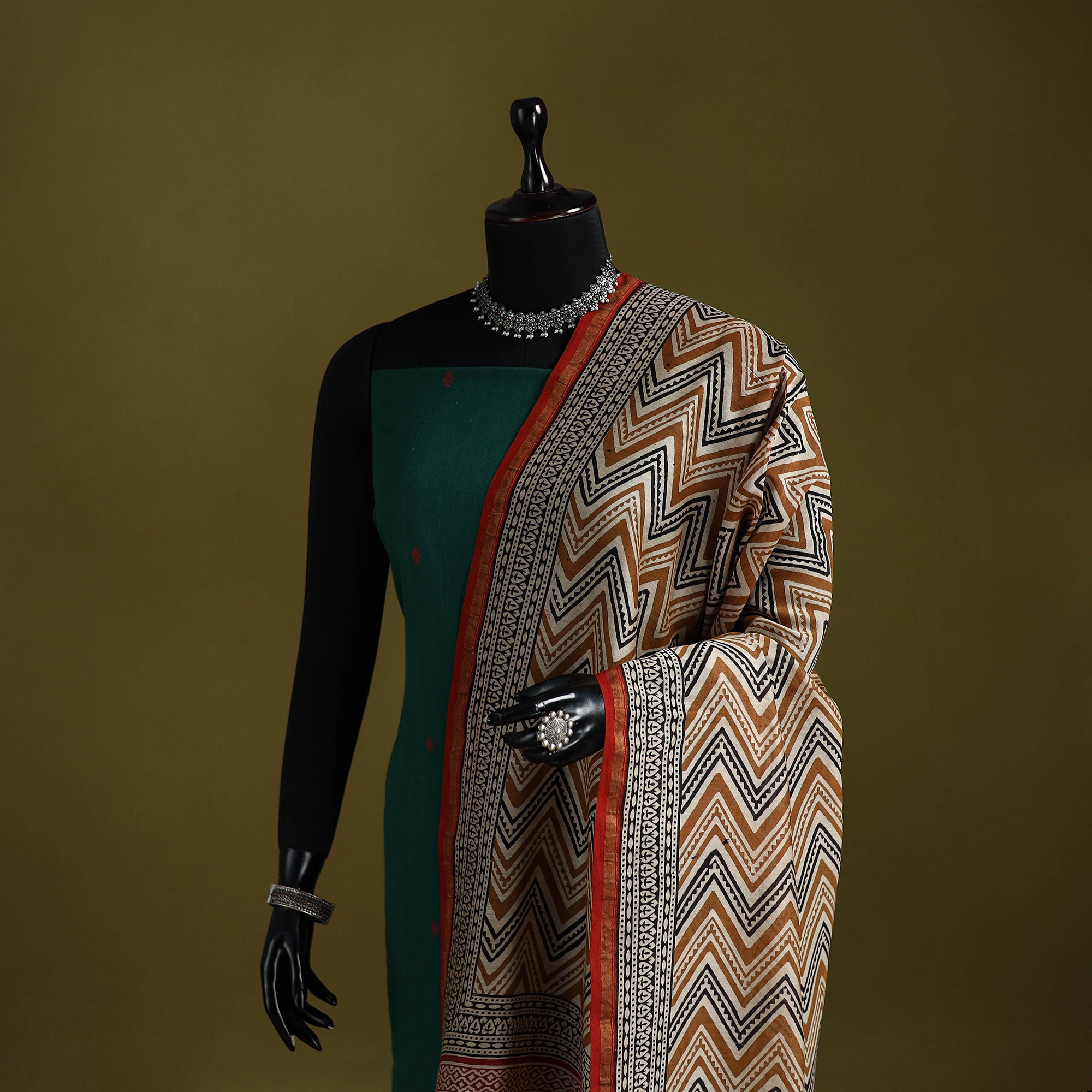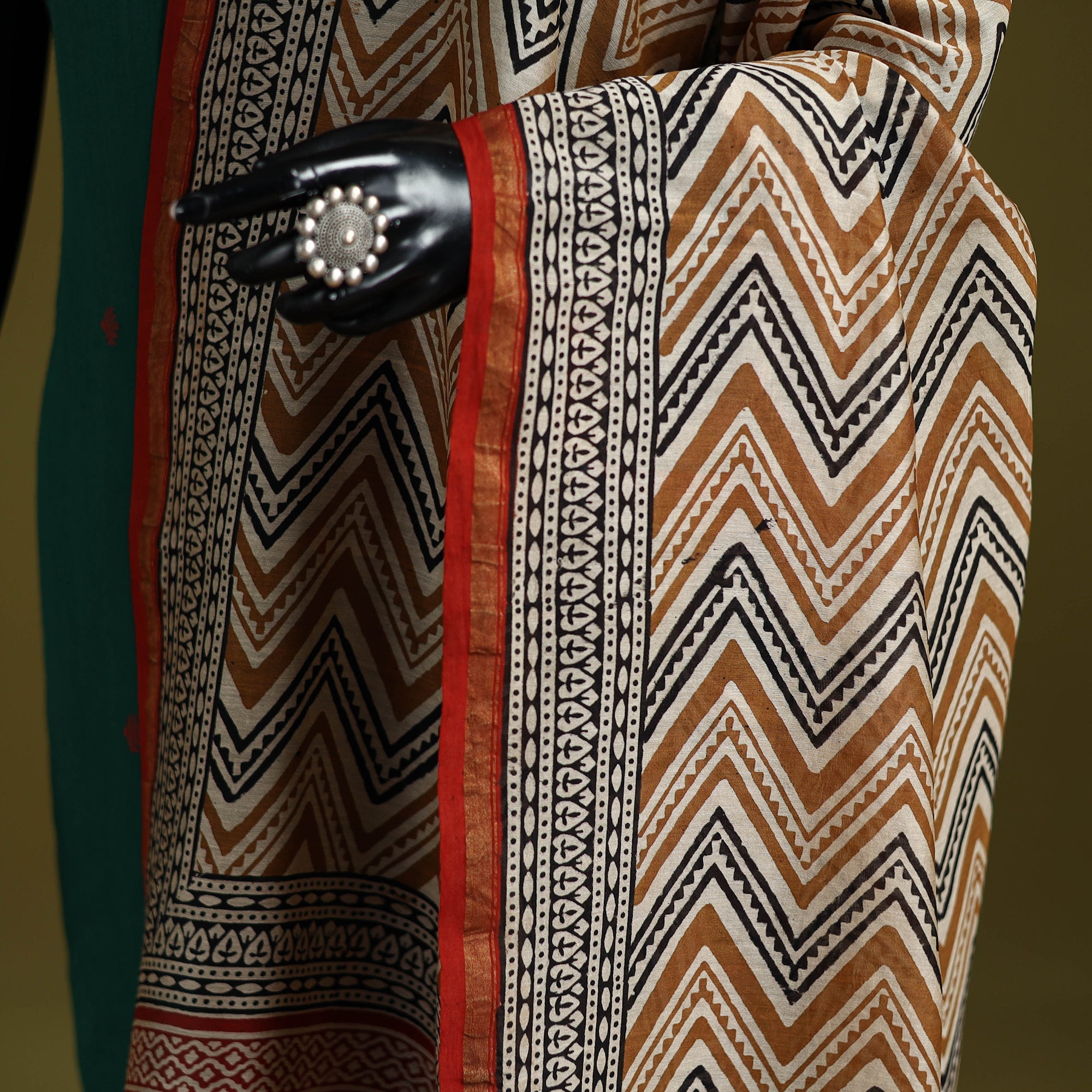 • Brown - chanderi silk bagru dupatta 15 - handcrafted