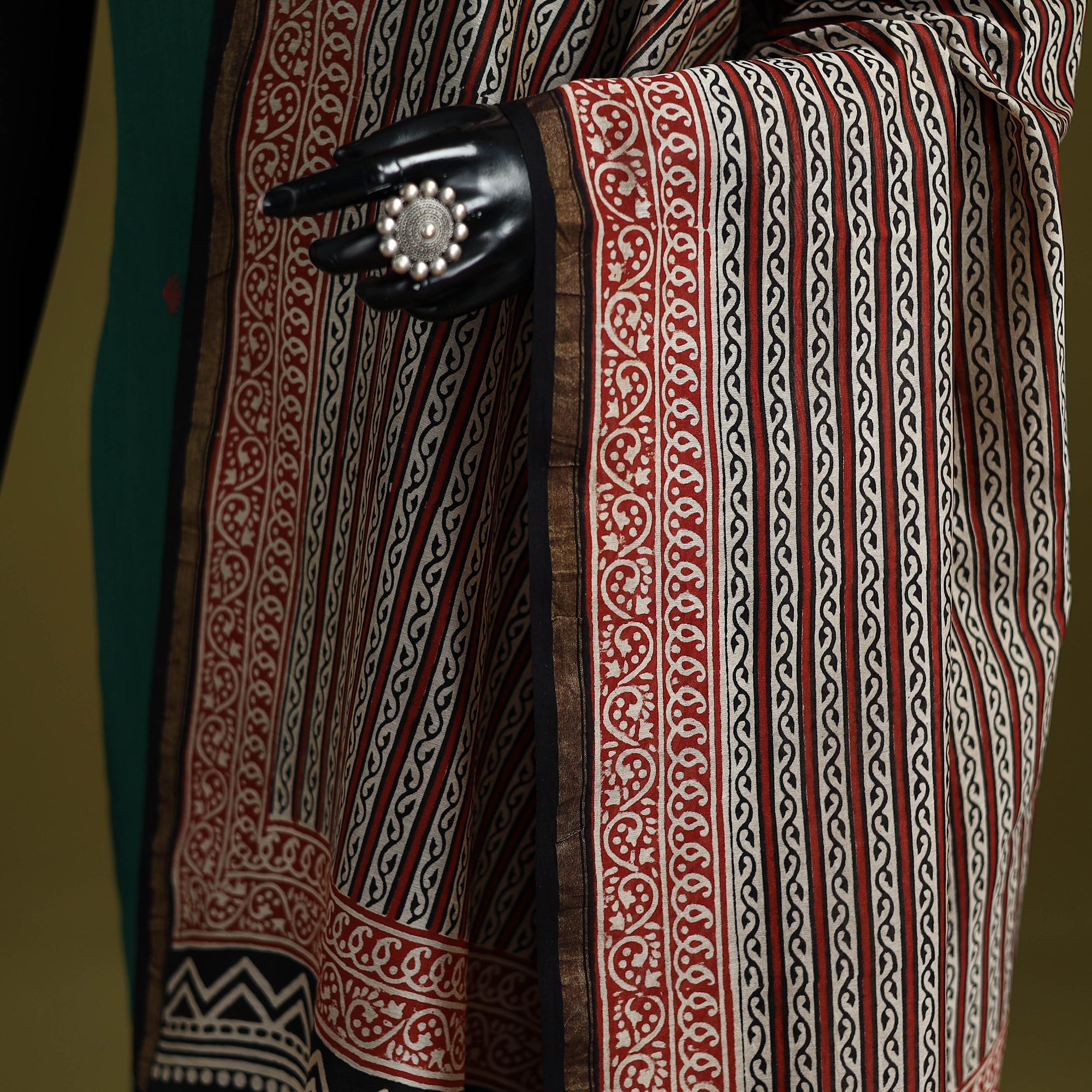 • Brown - chanderi silk bagru dupatta 18 - handcrafted