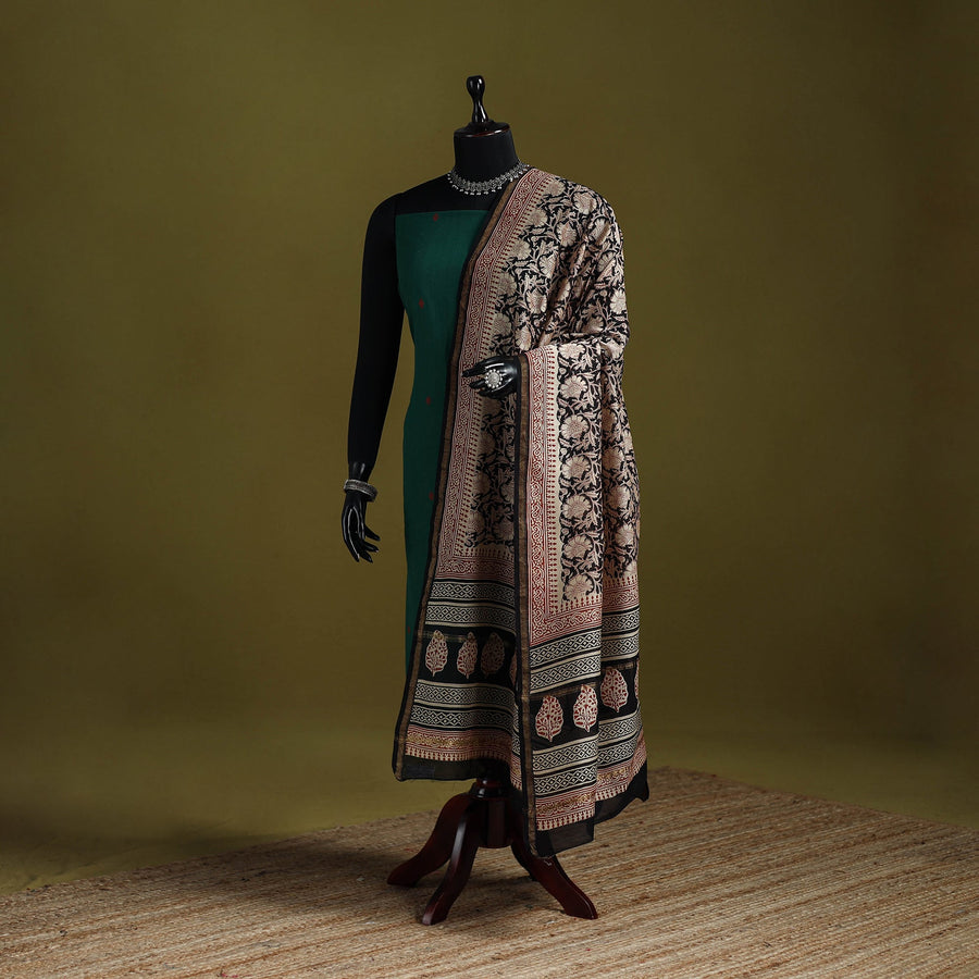 • Black - chanderi silk bagru dupatta 20 - handcrafted