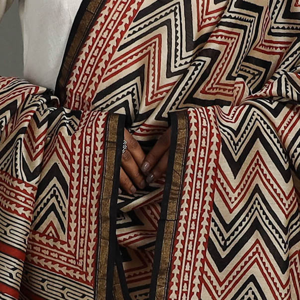 Experience the traditional artistry of Rajasthan with our multicolor bagru hand block printed chanderi silk-cotton dupatta with zari border. This exquisite dupatta is made using natural dyes through the traditional mud resist process using hand-carved wooden blocks practiced in Bagru, Rajasthan. This versatile dupatta complements any outfit, making it a perfect accessory for casual outings or special events, effortlessly combining traditional craftsmanship with contemporary elegance.
