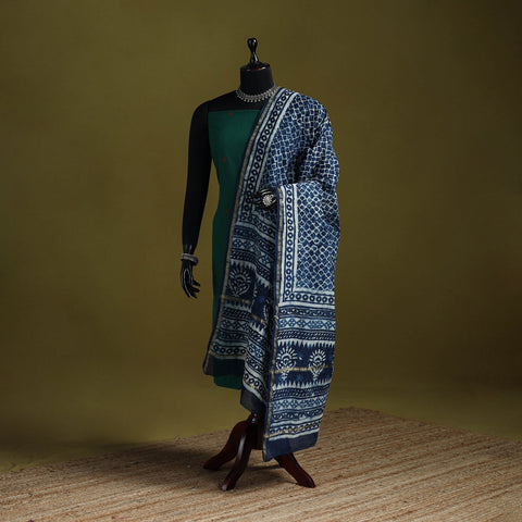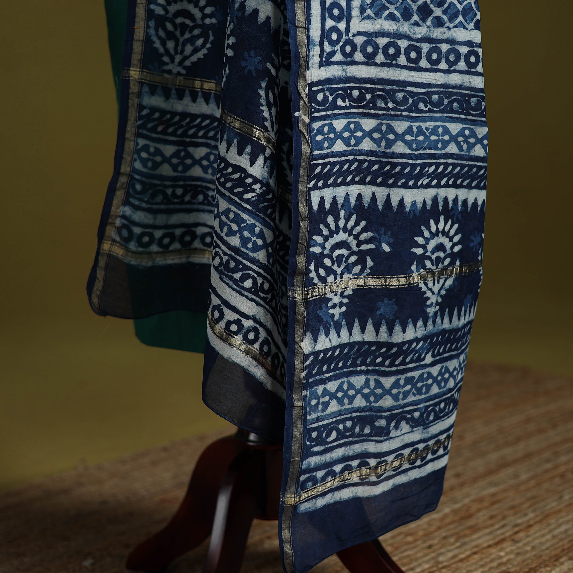 • Blue - indigo - chanderi silk dabu bagru dupatta 03