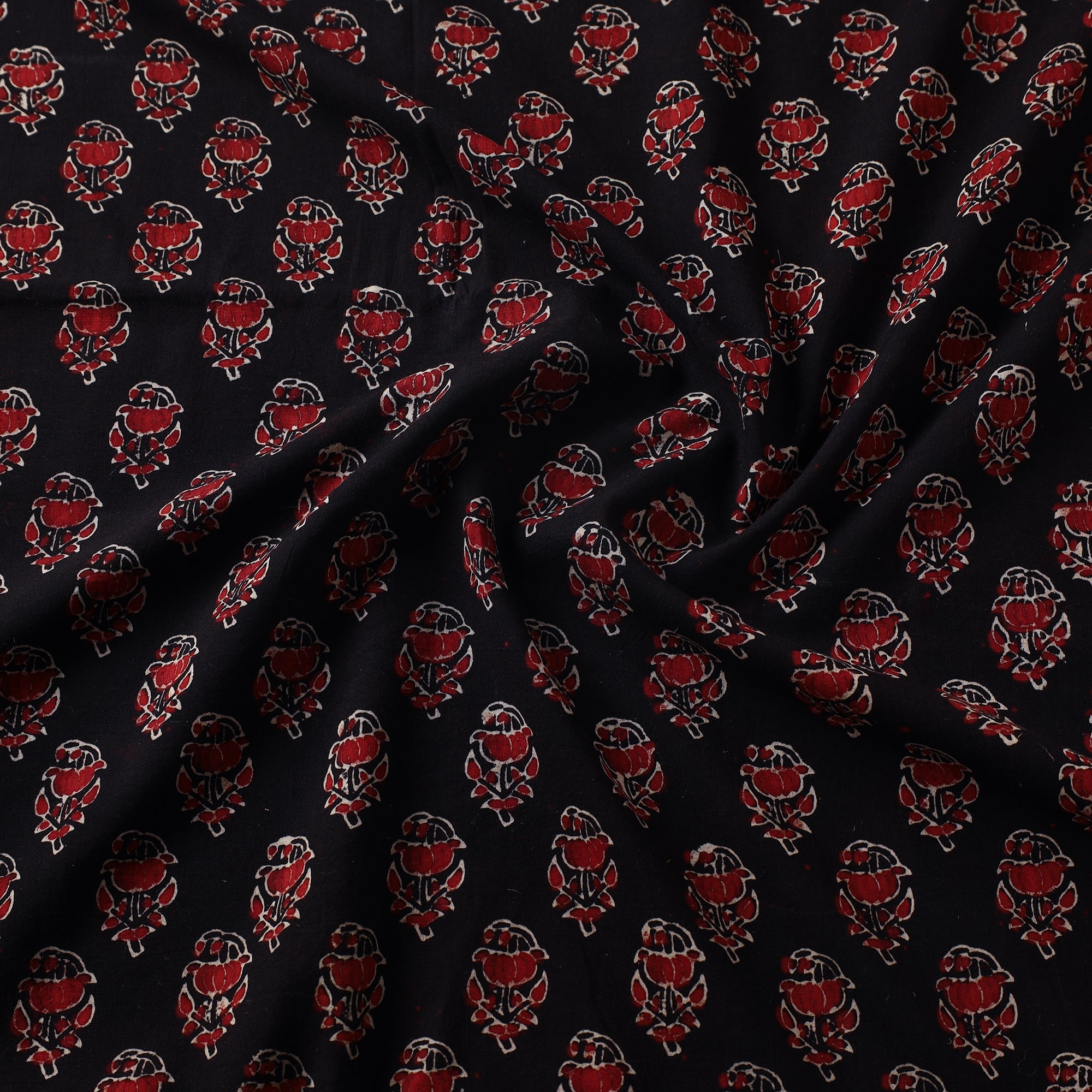 This finest quality ajrakh hand block printed cotton fabric is made using natural dyes through traditional ajrakh technique of hand-block printing practised by the master artisan by Riyaz Abdulmajid Khatri in the Kutch region of Gujarat. This exquisite fabric boasts intricate patterns and vibrant colours derived from natural dyes. Its rich heritage and exceptional craftsmanship make it perfect for creating unique garments, home decor, and accessories. Experience the timeless beauty of Ajrakh, a testament to the artistry and tradition of Indian hand-block printing. Ajrakh is a traditional vegetable dyeing and resist block-printing technique on cloth. It is estimated to be around 4,500 years old.