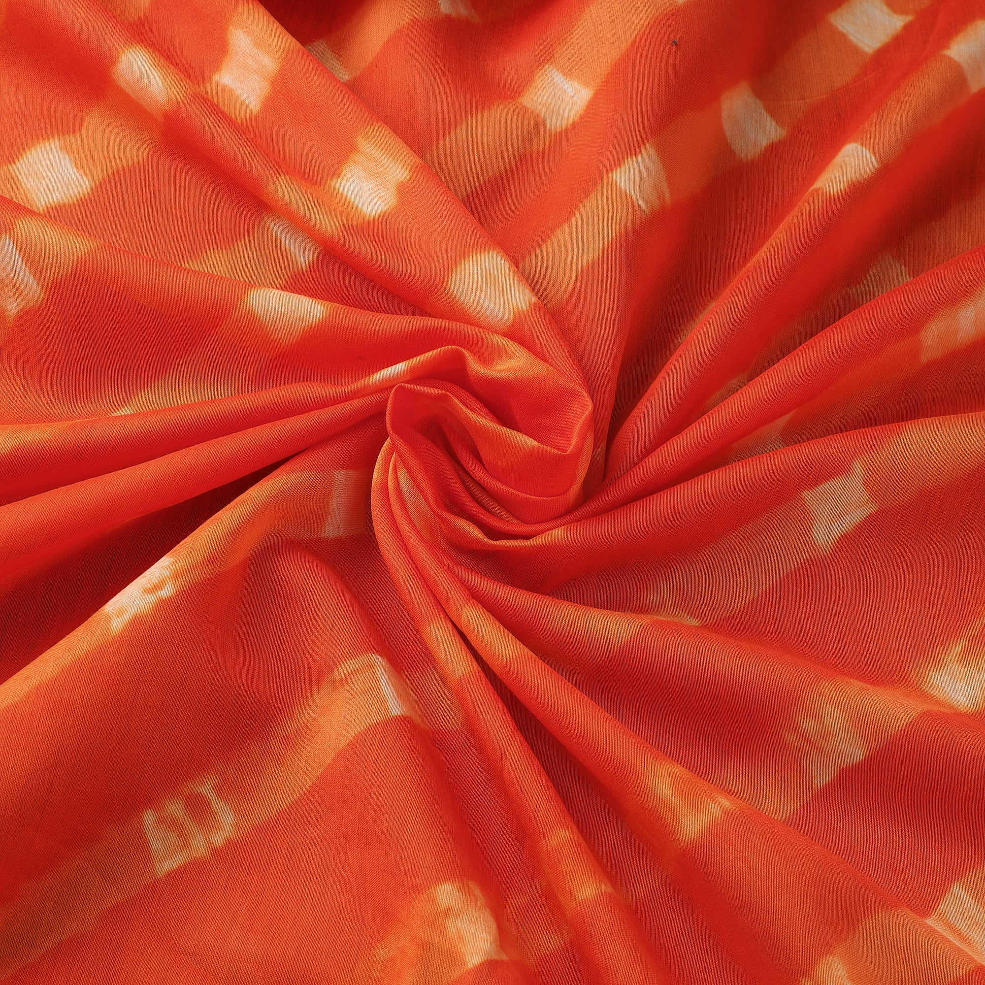Finest quality leheriya tie-dye mothra chanderi silk-cotton fabric. The wavy patterns on this fabric have been dyed using the leheriya tie and dye technique through the traditional process by the master artisan family of Badshah Miyan from the state of Rajasthan. Azo free dye has been used to make this fabric. Chanderi silks are known for its gossamer looks and amazing feel.