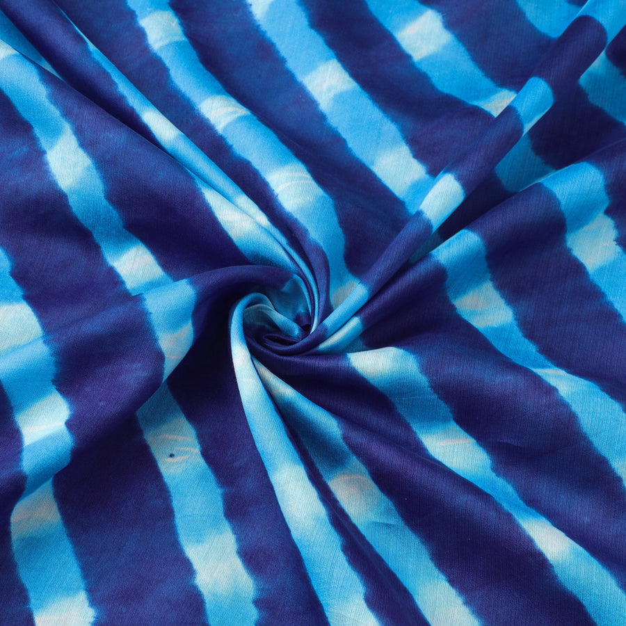 Finest quality leheriya tie-dye mothra chanderi silk-cotton fabric. The wavy patterns on this fabric have been dyed using the leheriya tie and dye technique through the traditional process by the master artisan family of Badshah Miyan from the state of Rajasthan. Azo free dye has been used to make this fabric. Chanderi silks are known for its gossamer looks and amazing feel.