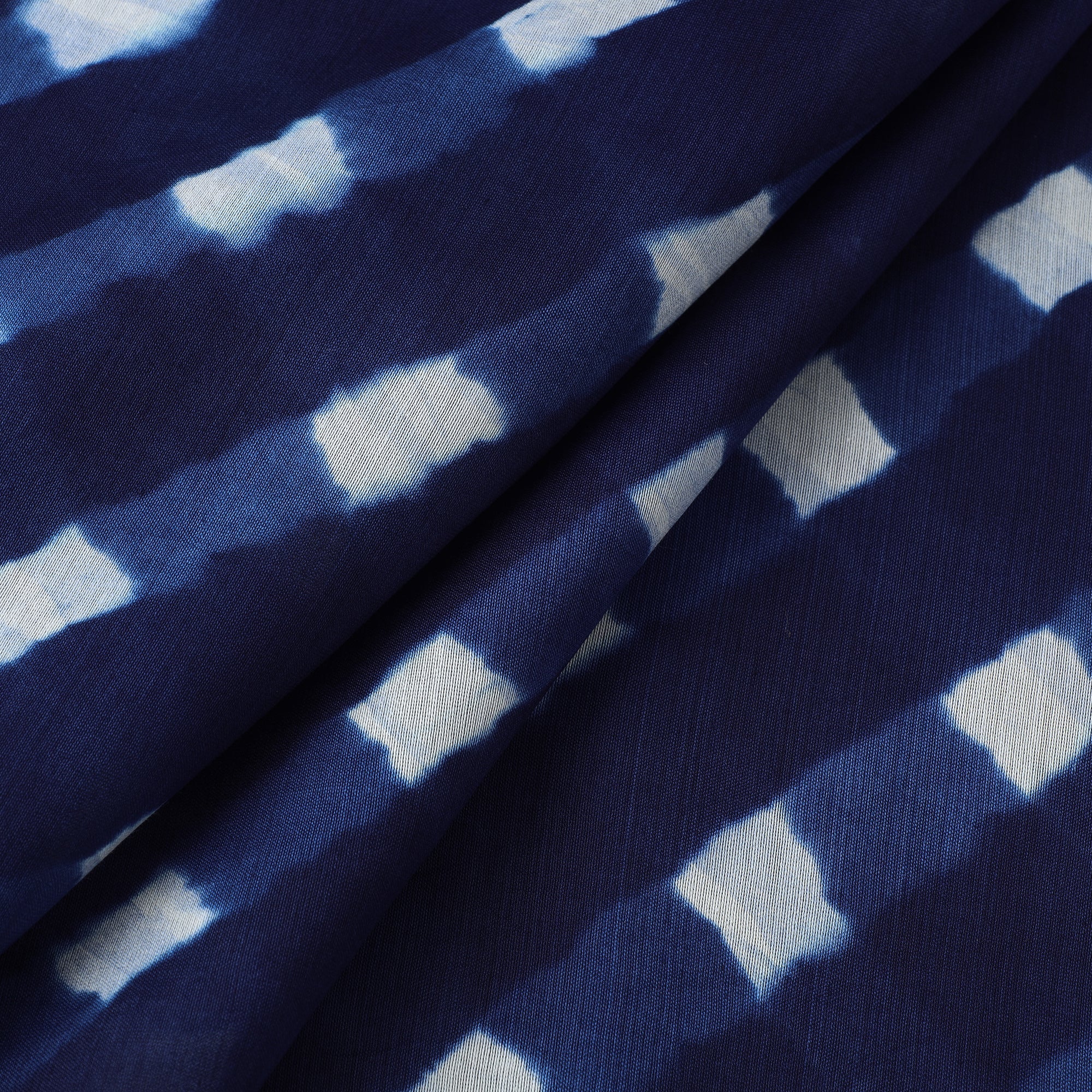 Finest quality blue leheriya tie-dye mothra chanderi silk-cotton fabric. The wavy patterns on this fabric have been dyed using the leheriya tie and dye technique through the traditional process by the master artisan family of Badshah Miyan from the state of Rajasthan. Azo free dye has been used to make this fabric. Chanderi silks are known for its gossamer looks and amazing feel.