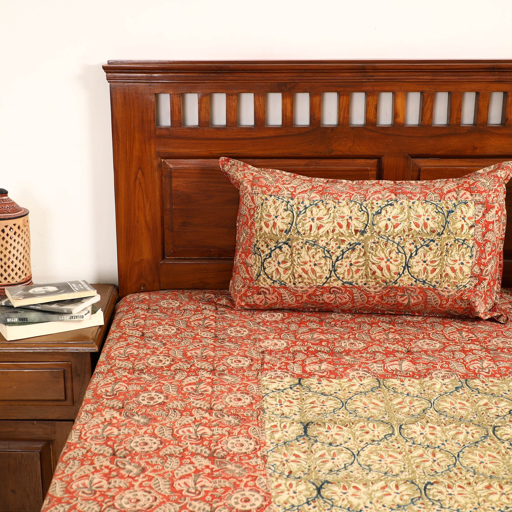 Transform your bedroom into a sanctuary of style and comfort with our red kalamkari block printed patchwork cotton double bed cover. This meticulously designed bedcover, featuring traditional block printing and intricate patchwork, elevates your home decor with traditional elegance. Crafted from natural dyed cotton fabric, it not only enhances aesthetics but also ensures a luxurious and restful night's sleep, providing a haven of serenity in your personal space.