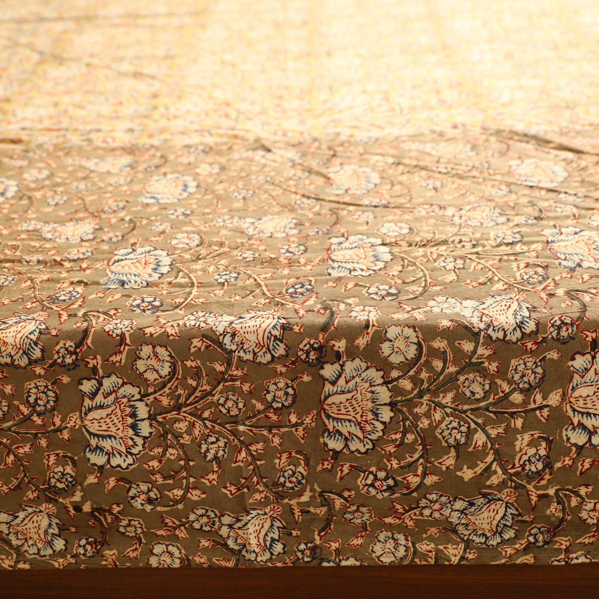Transform your bedroom into a sanctuary of style and comfort with our brown kalamkari block printed patchwork cotton double bed cover. This meticulously designed bedcover, featuring traditional block printing and intricate patchwork, elevates your home decor with traditional elegance. Crafted from natural dyed cotton fabric, it not only enhances aesthetics but also ensures a luxurious and restful night's sleep, providing a haven of serenity in your personal space.