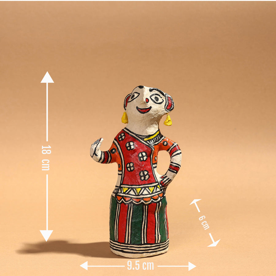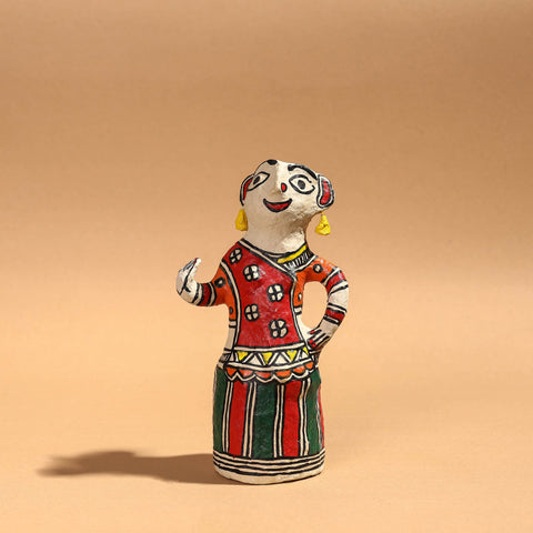 Handpainted Madhubani motifs with fabric colors on paper mache decorative item by master artisan Hira Devi from Bihar.