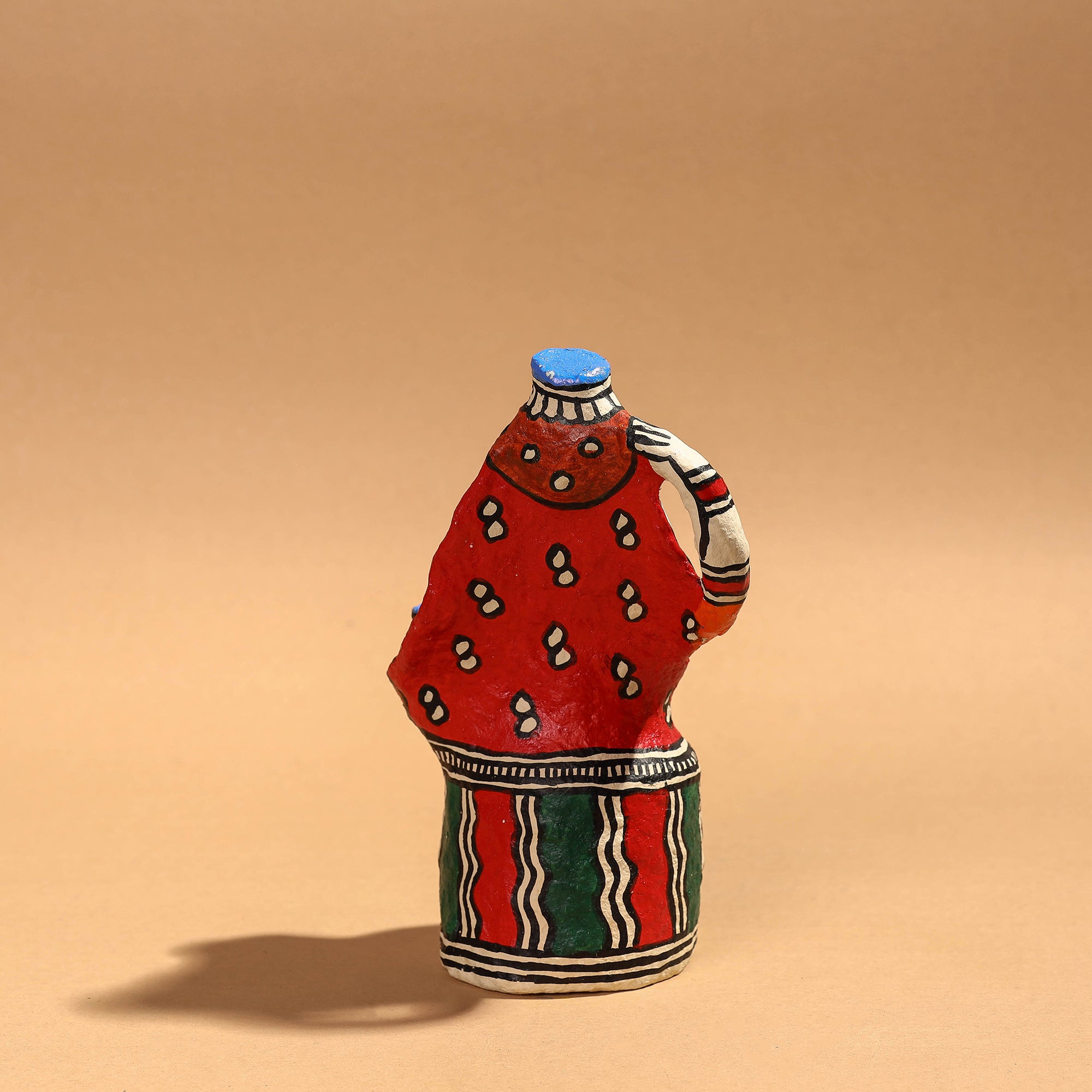 Handpainted Madhubani motifs with fabric colors on paper mache decorative item by master artisan Hira Devi from Bihar.