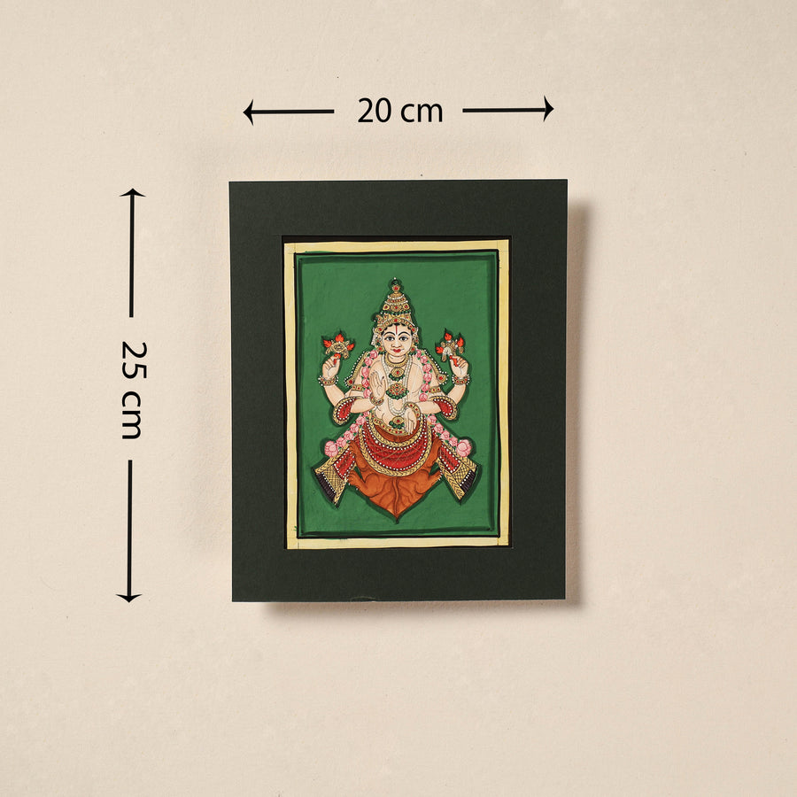 Traditional hand-painted painting with natural colours on archival paper with a hard paper mount. Mount can be changed as required. This classical South Indian art comes from Mysore, from the family of JS Sridhar Rao. A wonderful painting for the discerning decor aficionado or a gift for an art lover. These are priceless collectibles. Mysore painting is an important form of classical South Indian painting that originated in and around the town of Mysore in Karnataka. Mysore paintings are known for their elegance, muted colours, and attention to detail. The themes for most of these paintings are Hindu gods and goddesses and scenes from Hindu mythology. Mysore paintings are characterised by delicate lines, intricate brush strokes, graceful delineation of figures, and the discreet use of bright vegetable colours and lustrous gold leaf.