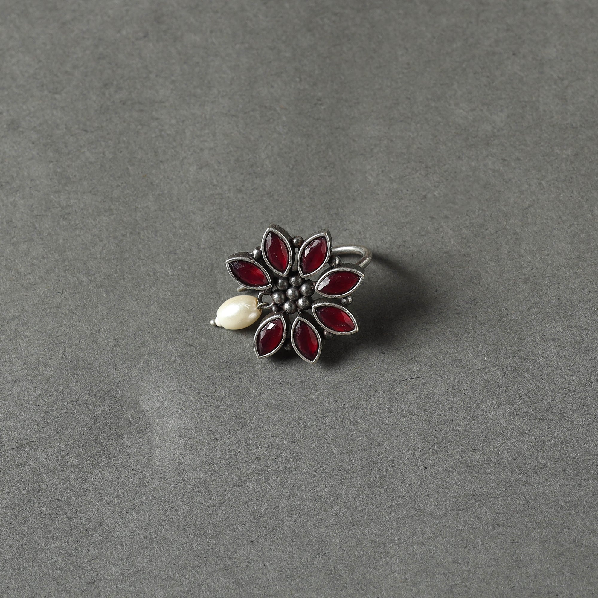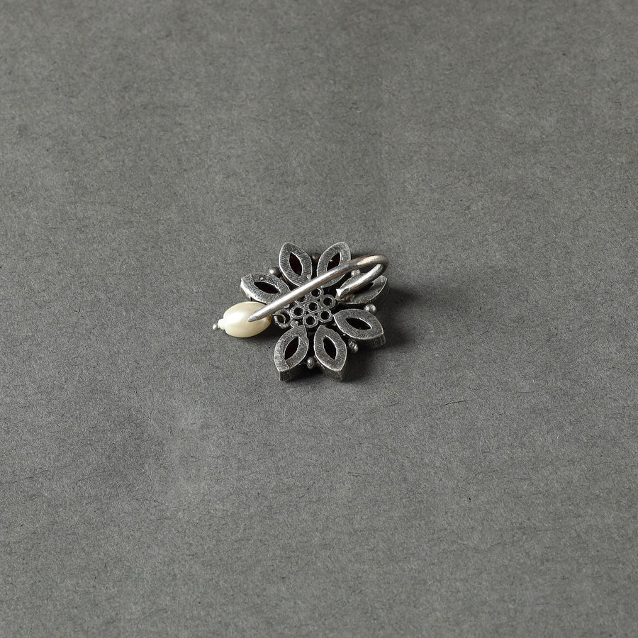 This exquisite antique silver finish stone work juda/hair pin, made with a high-quality oxidised brass base, radiates elegance and charm. The rustic shine effect enhances its allure, making it a timeless accessory that adds a touch of sophistication to any hairstyle.
