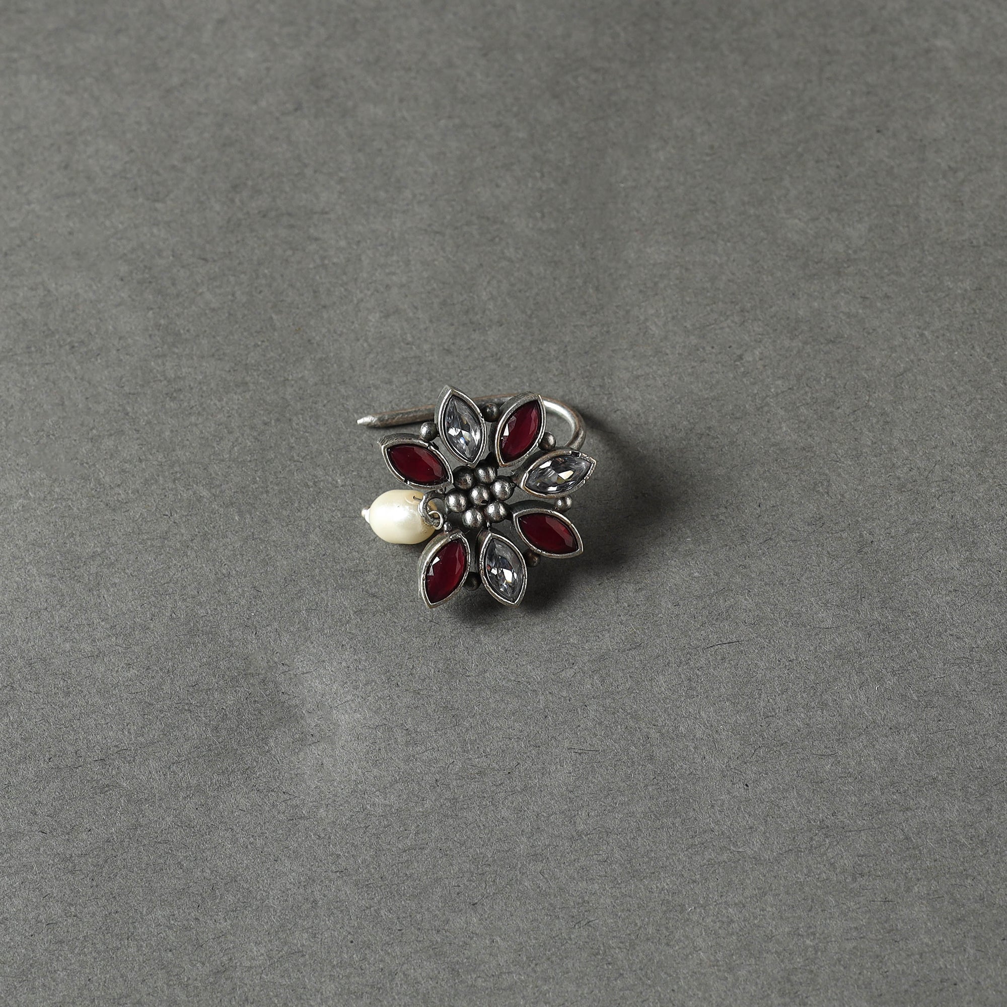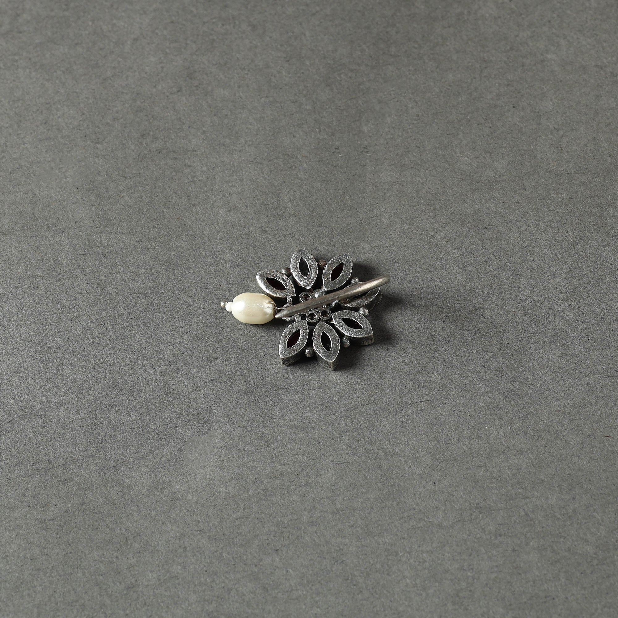 This exquisite antique silver finish stone work juda/hair pin, made with a high-quality oxidised brass base, radiates elegance and charm. The rustic shine effect enhances its allure, making it a timeless accessory that adds a touch of sophistication to any hairstyle.