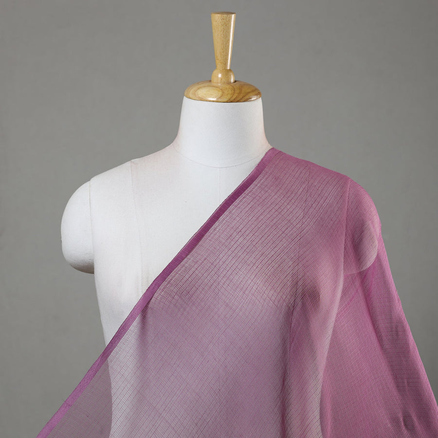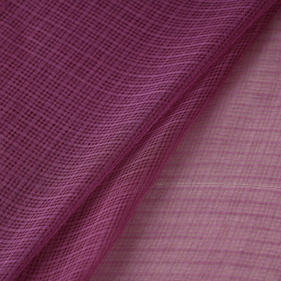 Indulge in the finesse of purple plain weaving cotton kota doria fabric. Kota doria is a blend of strong cotton and lustrous silk yarns (70% cotton x 30% silk), and is known for its lightweight and sheer texture. This fabric is woven in the Kota district of Rajasthan, where the threads are finely interwoven to create check patterns.