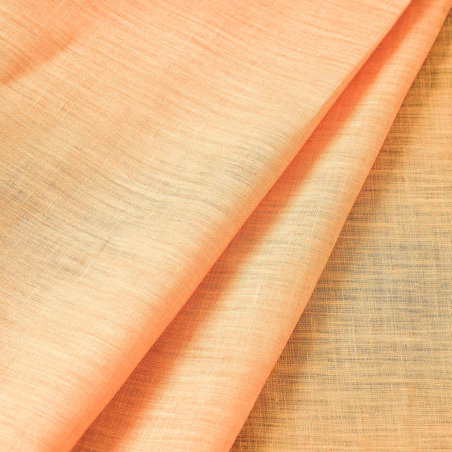 Fine quality light orange fabric made from the finest pure handloom linen fabric sourced from Bhagalpur, Bihar. The fabric showcases beautifully handwoven textures, giving it a unique and elegant look. This fabric is not only visually appealing but also functional. Made from flax plant fiber, linen is known for its versatility and ability to keep you cool and fresh in hot weather. Despite being laborious to make, the fiber is highly absorbent, making it a perfect choice for clothing. The breathable fabric ensures maximum comfort, while the handwoven texture adds a touch of sophistication. The simple yet elegant style of this fabric makes it perfect for any occasion, whether it's a casual outing or a formal event.