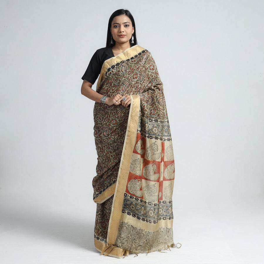 Experience the elegance of our original brown pedana kalamkari saree. Hand block printed with intricate designs and a stunning zari border, this saree blends tradition with luxury. Crafted from chanderi silk, it features the timeless art of Kalamkari, perfect for any special occasion.
