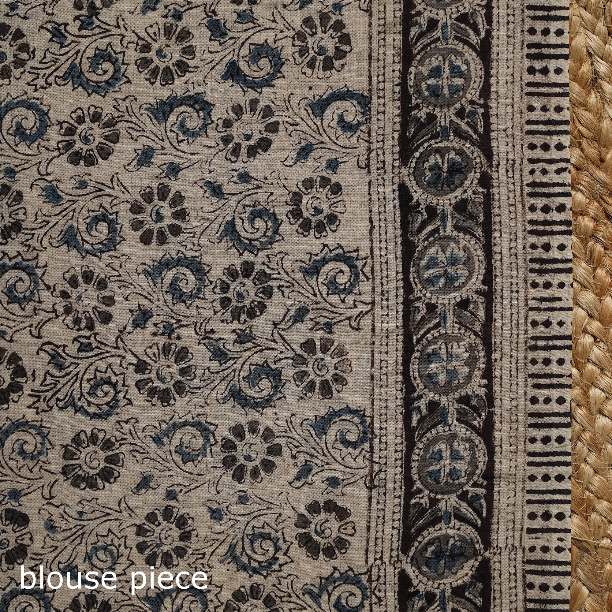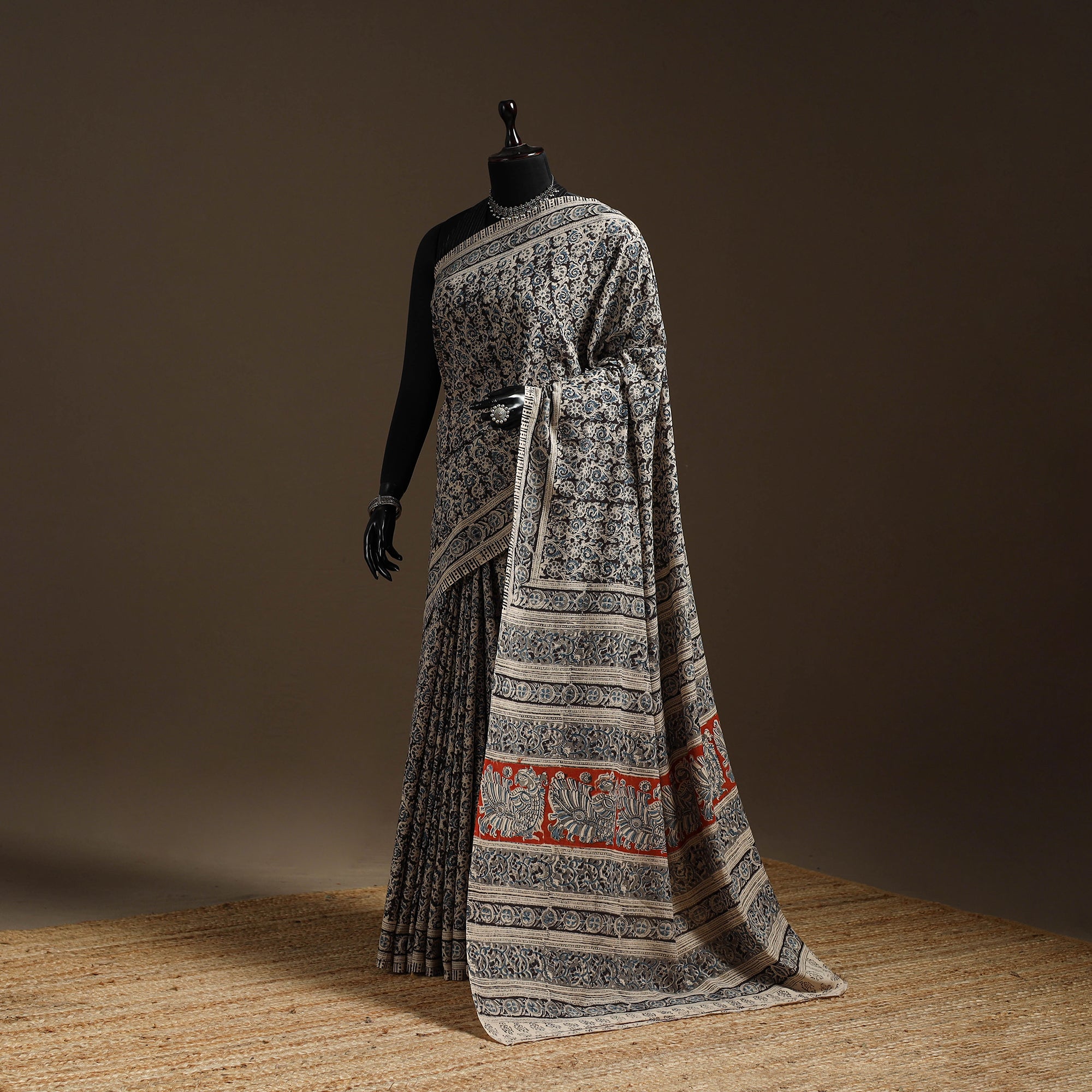 • Black - Natural Dyed Pedana Block Print Cotton Kalamkari Saree 05