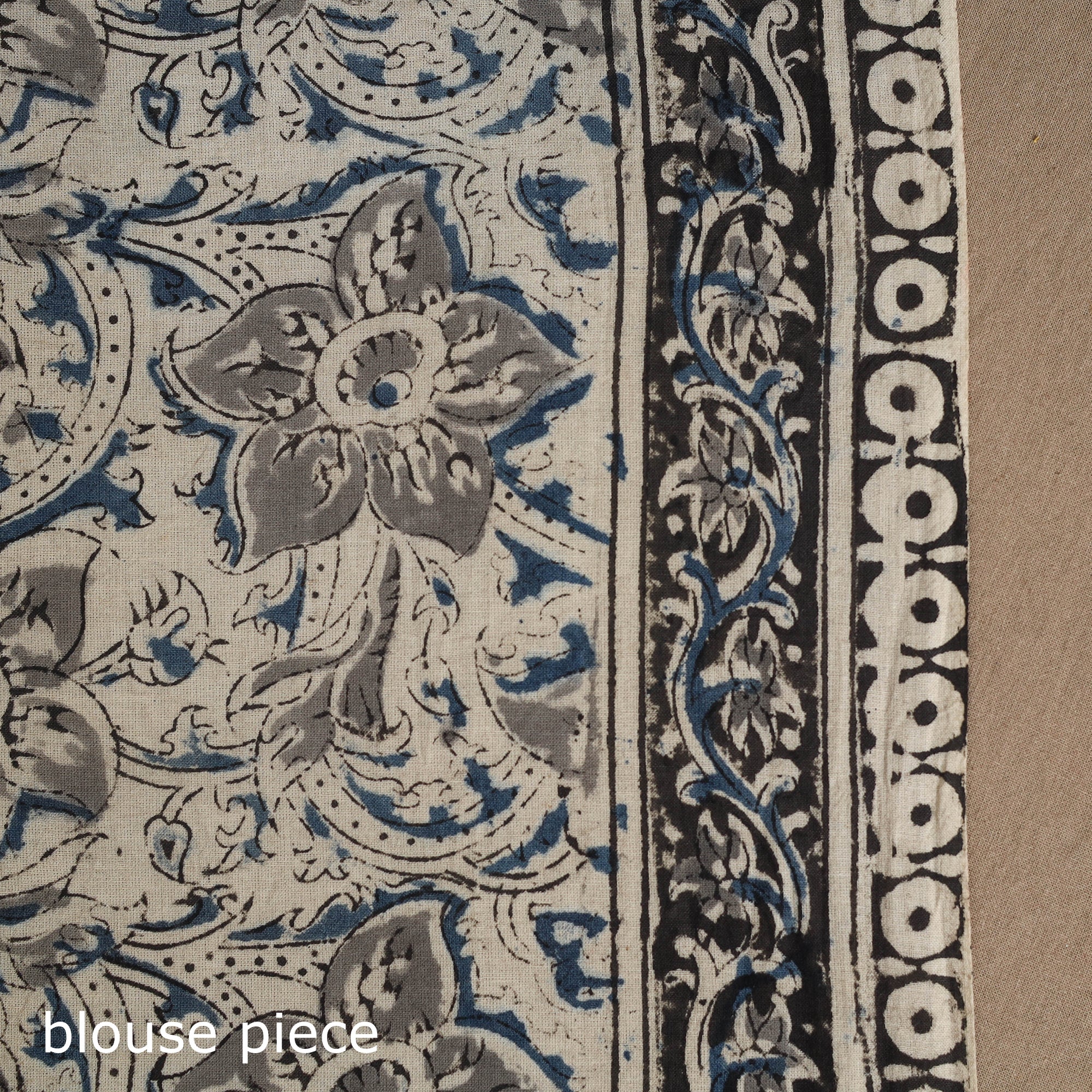 Fine-quality grey Kalamkari saree with block-printed. This kalamkari cotton saree features intricate designs and natural dyes, reflecting the rich tradition of Kalamkari art. Perfect for special occasions, it combines elegance with comfort. Celebrate Indian craftsmanship and support local artisans with this unique piece.
