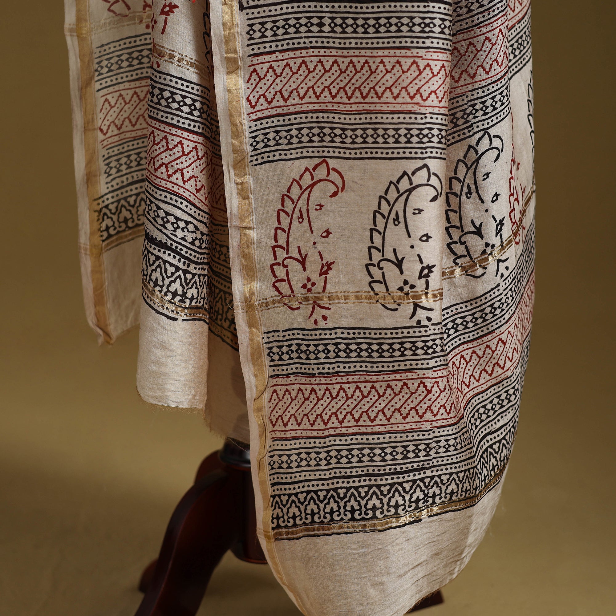 Elevate your style effortlessly with our red bagh block-printed chanderi silk cotton dupatta, a fine creation by artisan Yakub Khatri from Bagh, the Dhar district of Madhya Pradesh. Meticulously crafted traditional handblock printing, this versatile masterpiece adds a touch of heritage and sophistication to any outfit, whether casual or festive. Experience the timeless charm of artisanal craftsmanship, which makes every outfit a celebration of elegance and cultural richness.