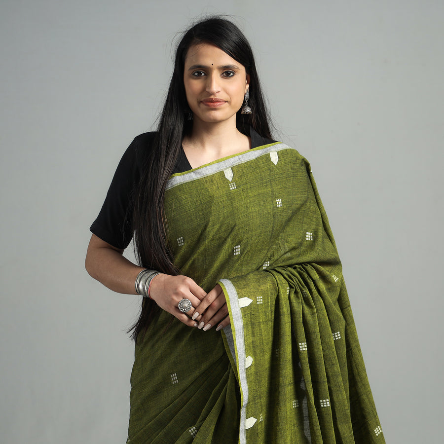 Elevate your style with our exquisite phulia jamdani handloom cotton saree, boasting intricate weaving patterns literally like "hand embroidery". Meticulously crafted in West Bengal, this masterpiece showcases the unique Jamdani (extra weft) weaving technique. Its tapestry-like texture, woven with colored, gold, or silver threads, reflects timeless artistry. The finest quality and labor-intensive process make this saree a highly expensive product. Drape yourself in tradition and elegance, as each thread tells a story of craftsmanship. Perfect for special occasions, this saree is a testament to Bengal's rich weaving heritage.