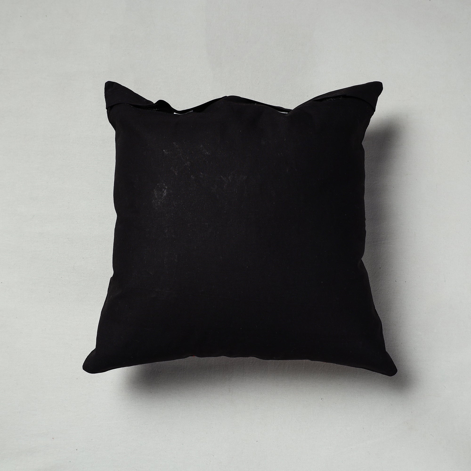 Tribal design hand stitched black pipli applique work cushion cover made from pure cotton fabrics, handcrafted by artisans of Pipili, the hub of traditional art & craft in Odisha. Applique work is a traditional patchwork that has a long history in Odisha. This applique work is normally dependent on some bright colours that is red, white, black, yellow, green and blue etc. The artisans skillfully stitch the traditional motifs like animals, birds and flowers on fabric. Modern applique art form mainly inspired by the religious in nature and it is closely connected with religious traditions.