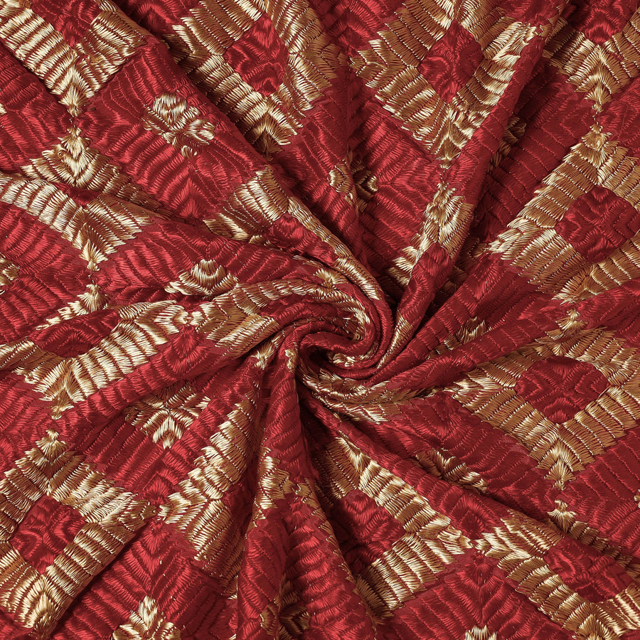 Fine quality chinnon fabric from Punjab features phulkari embroidery with multicolored viscose silk threadwork. Phulkari is a refined embroidery technique that involves intricate designs and motifs created with different colored threads. This machine-embroidered fabric showcases the art of Punjab's rich culture and heritage. Bagh work, a variation where the embroidery completely covers the material, is also a type of phulkari embroidery.