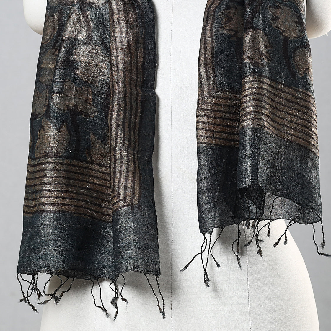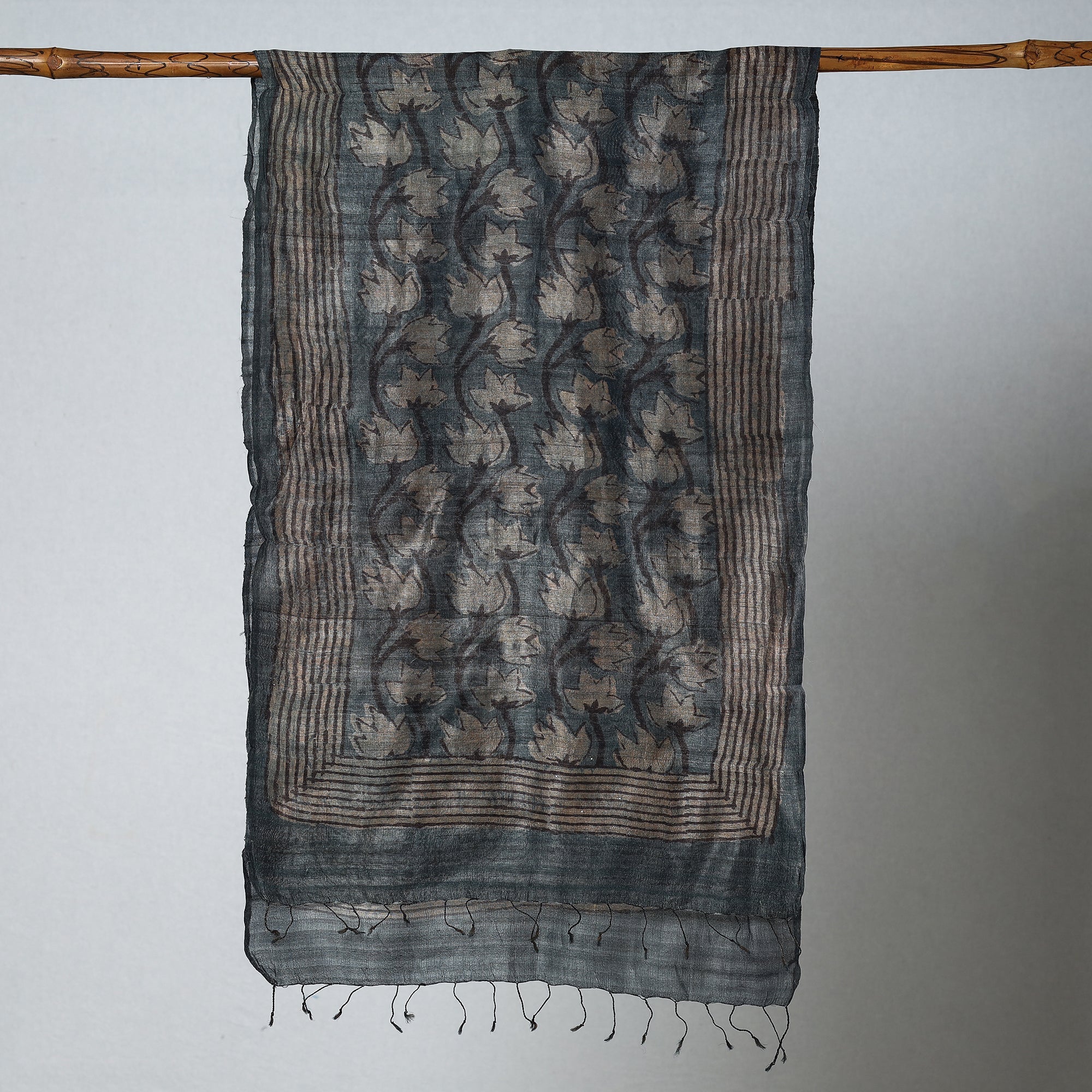 This finest quality bindaas hand block printed tussar silk handloom stole is made using natural dyes through traditional processes by skilled fourth-generation textile printers in Rajasthan. This stole offers a embrace of comfort and style. The pure tussar silk ensures a soft and breathable feel against your skin, elevating your sensory experience. The artistic block printing process adds a distinctive touch, making this stole a wearable masterpiece. Versatile and chic, it's a statement accessory for any occasion, celebrating heritage and contemporary fashion seamlessly.