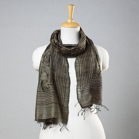 Brown - Handloom Block Print Tussar Silk Bindaas Stole