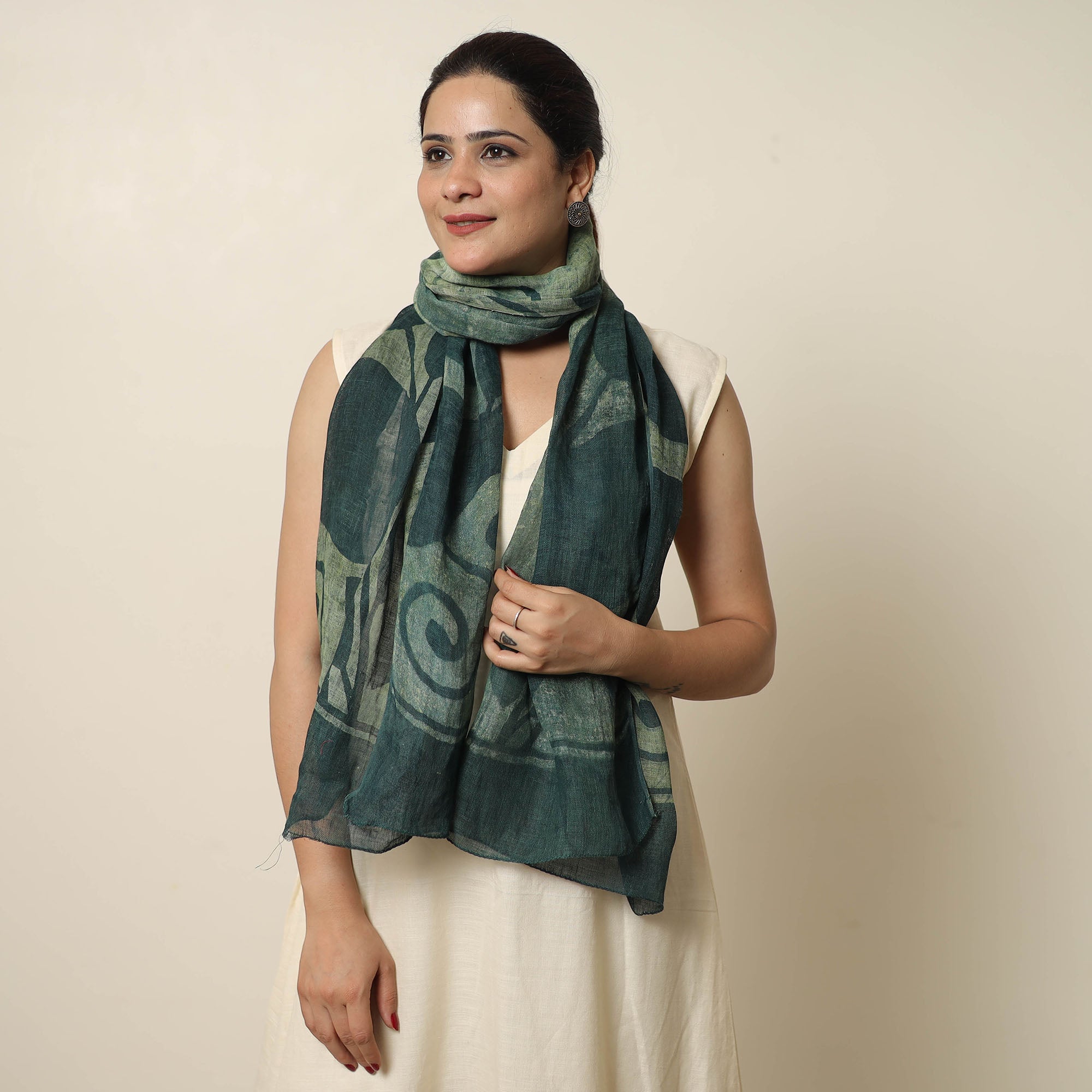 Green - Handloom Block Print Natural Dyed Linen Bindaas Stole 06