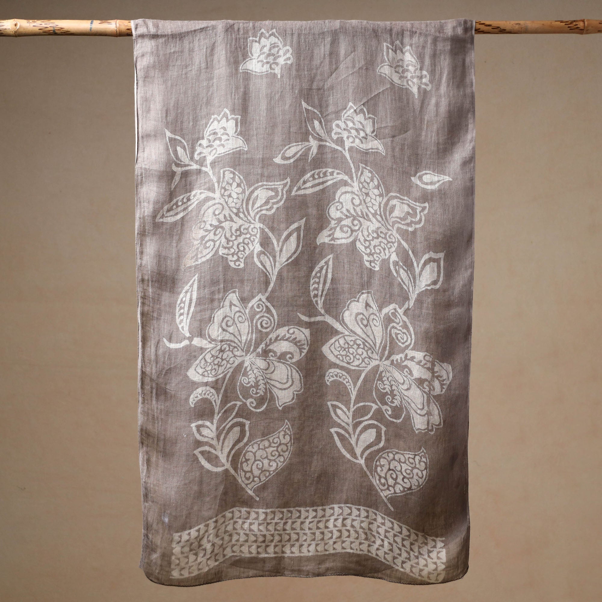 This finest quality bindaas hand block printed linen handloom stole is made using natural dyes through traditional processes by skilled fourth-generation textile printers in Rajasthan. This stole offers a soft and breathable feel, enhancing your style with ease. Embrace the comfort of linen against your skin, as each stole tells a story of artisanal dedication through the intricate handloom technique. The artistic block printing process adds a distinctive touch, making this stole a wearable masterpiece. Versatile and chic, it's a statement accessory for any occasion, celebrating heritage and contemporary fashion seamlessly.