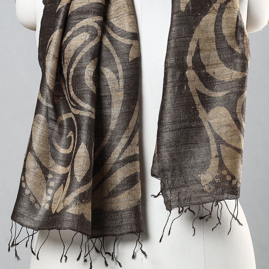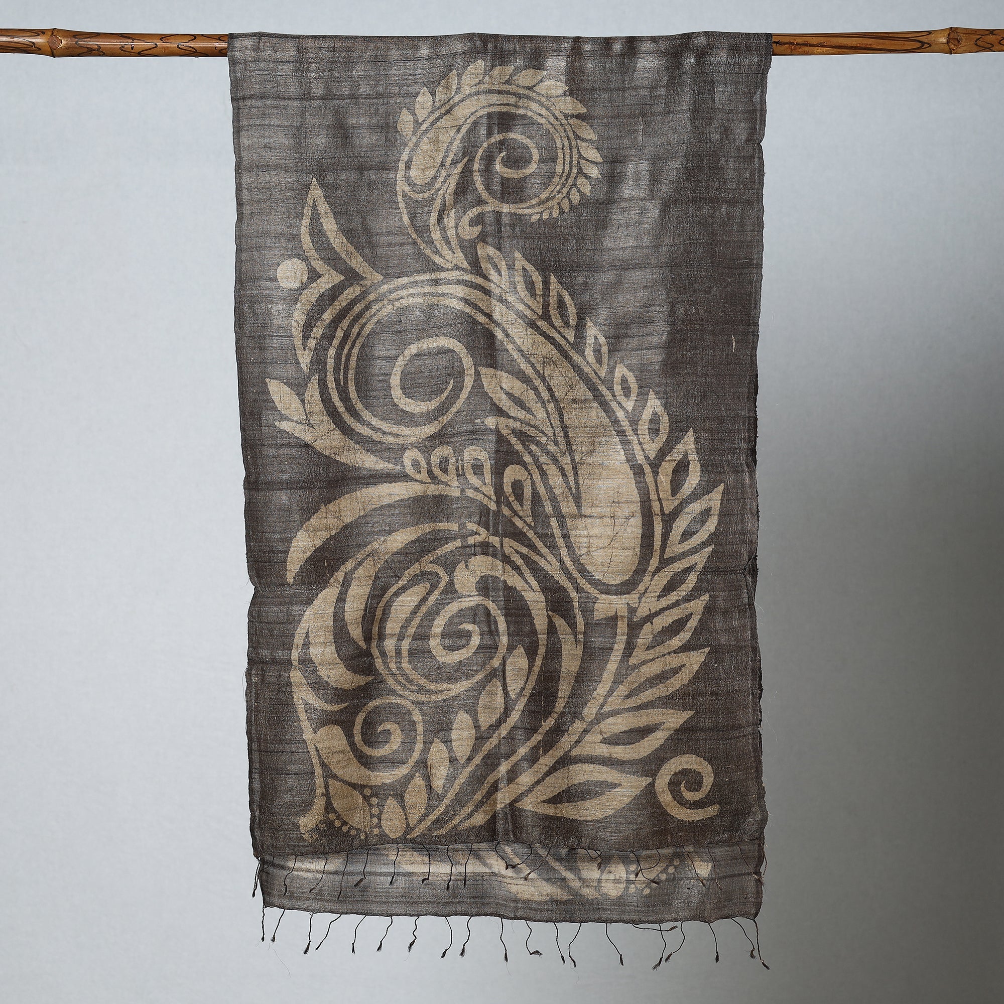 This finest quality bindaas hand block printed tussar silk handloom stole is made using natural dyes through traditional processes by skilled fourth-generation textile printers in Rajasthan. This stole offers a embrace of comfort and style. The pure tussar silk ensures a soft and breathable feel against your skin, elevating your sensory experience. The artistic block printing process adds a distinctive touch, making this stole a wearable masterpiece. Versatile and chic, it's a statement accessory for any occasion, celebrating heritage and contemporary fashion seamlessly.