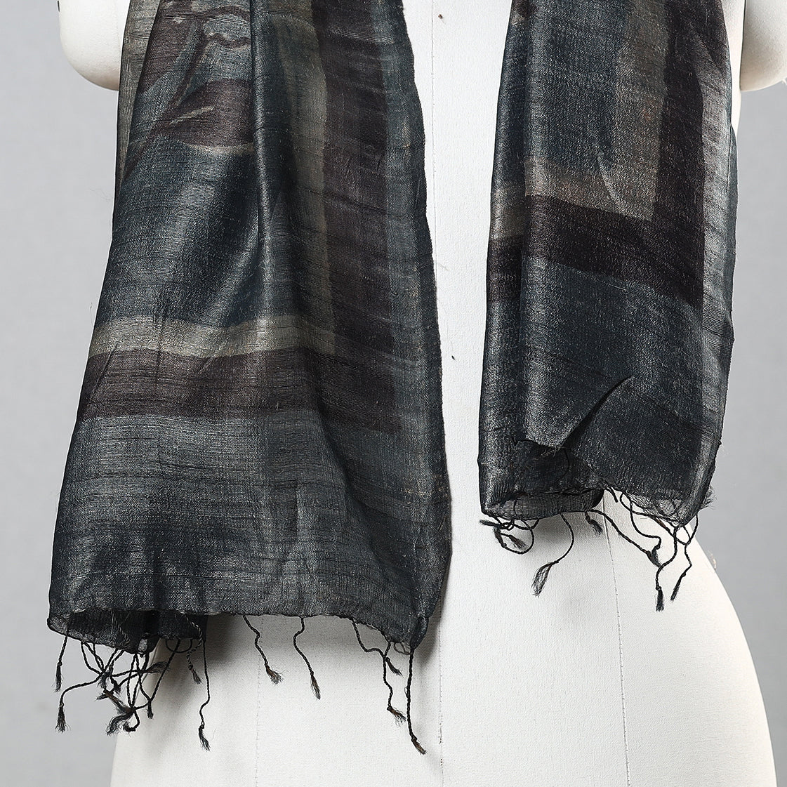 Black - Handloom Block Print Tussar Silk Bindaas Stole