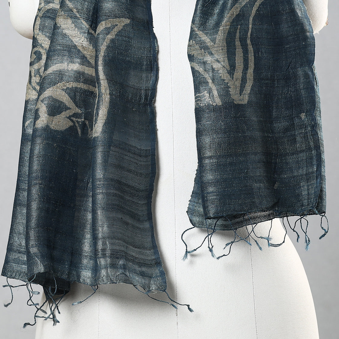 This finest quality bindaas hand block printed tussar silk handloom stole is made using natural dyes through traditional processes by skilled fourth-generation textile printers in Rajasthan. This stole offers a embrace of comfort and style. The pure tussar silk ensures a soft and breathable feel against your skin, elevating your sensory experience. The artistic block printing process adds a distinctive touch, making this stole a wearable masterpiece. Versatile and chic, it's a statement accessory for any occasion, celebrating heritage and contemporary fashion seamlessly.
