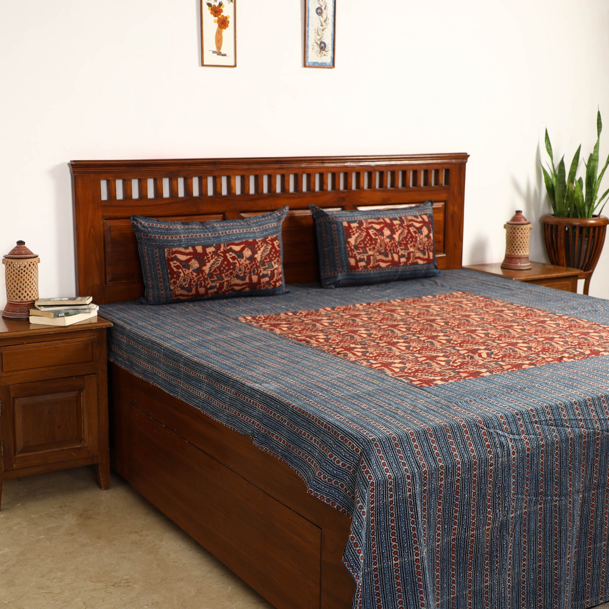 This exquisite ajrakh block Printed patchwork cotton bed cover accompanied by matching pillow covers. This bed cover features the traditional art of ajrakh block printing, showcasing intricate patterns and vibrant colors. The patchwork design adds an extra layer of artistry, making it a unique and elegant addition to your home. Crafted from high-quality cotton, it offers comfort and style. Add a touch of traditional Indian craftsmanship to your bedroom with this beautiful bed cover and pillow cover set.