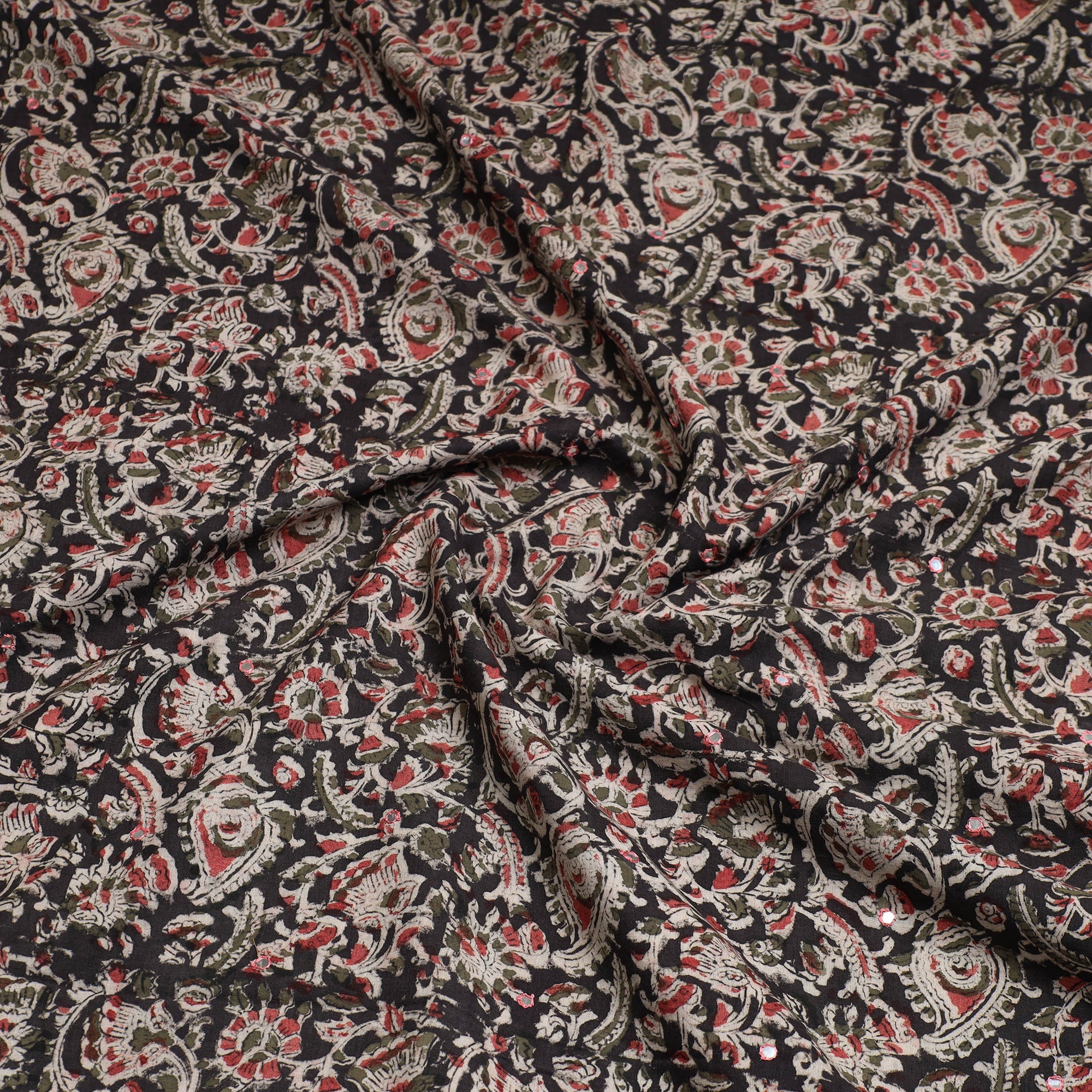 Elevate your wardrobe with our exquisite kalamkari block printed sequin work cotton kurta material. Crafted by master artisans using traditional hand block printing techniques, this fine-quality fabric showcases intricate designs and vibrant hues achieved through natural dyes. Perfect for crafting your own stylish kurta, this material blends tradition with contemporary elegance, making it an ideal choice for cultural events, festivities, or casual chic ensembles.